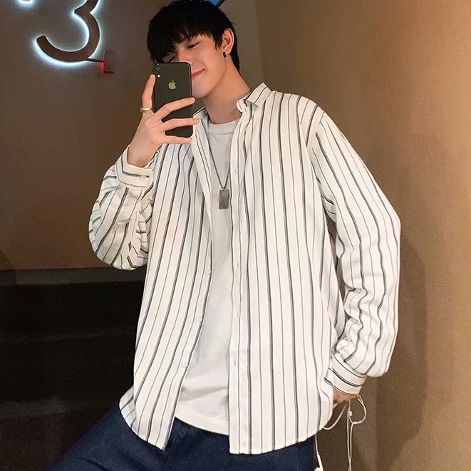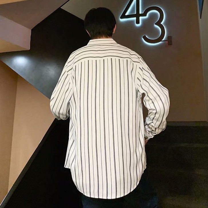 【M世代】時尚條紋襯衫 長袖襯衫 百搭日系風 韓版寬鬆外搭襯衫 薄外套 情侶裝 男生衣服 防曬防風(LJH1850)