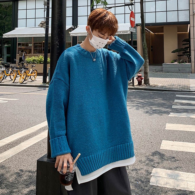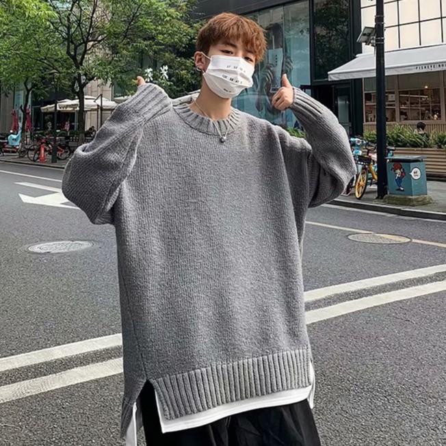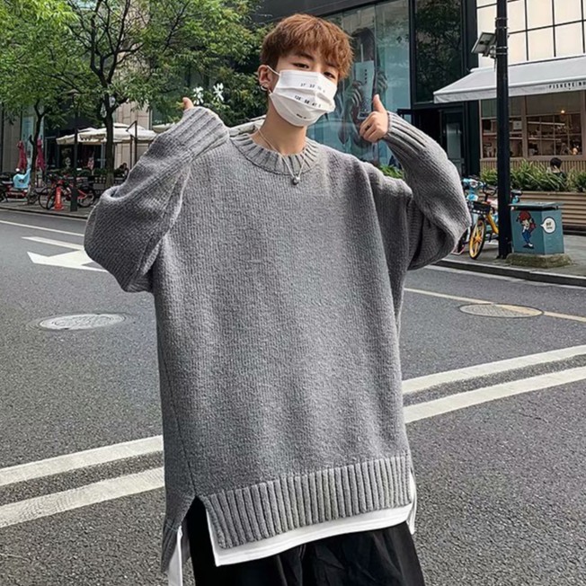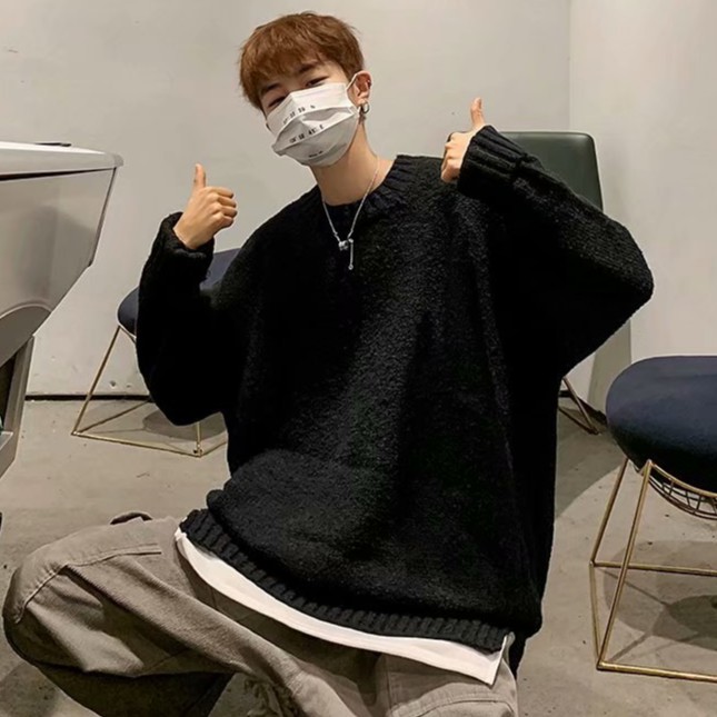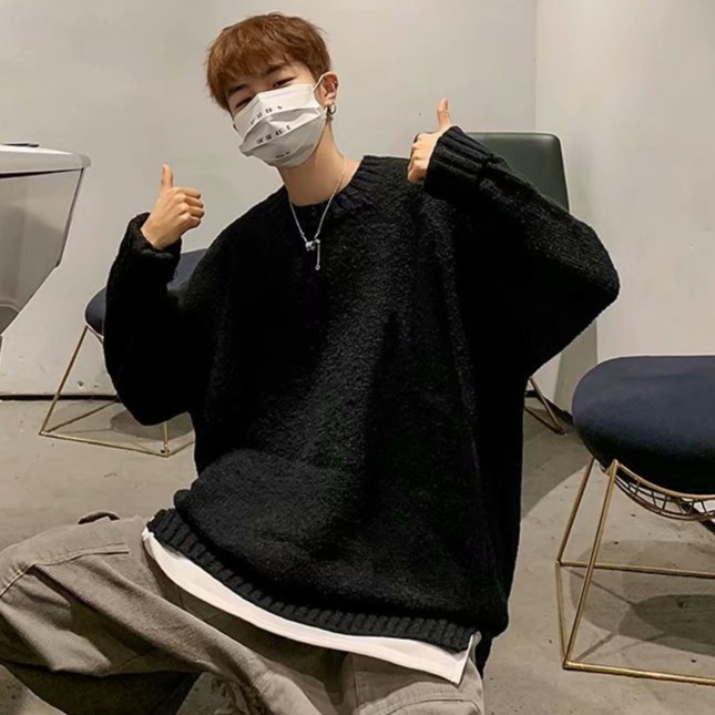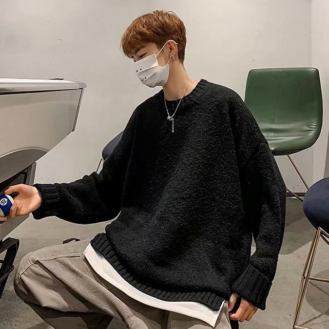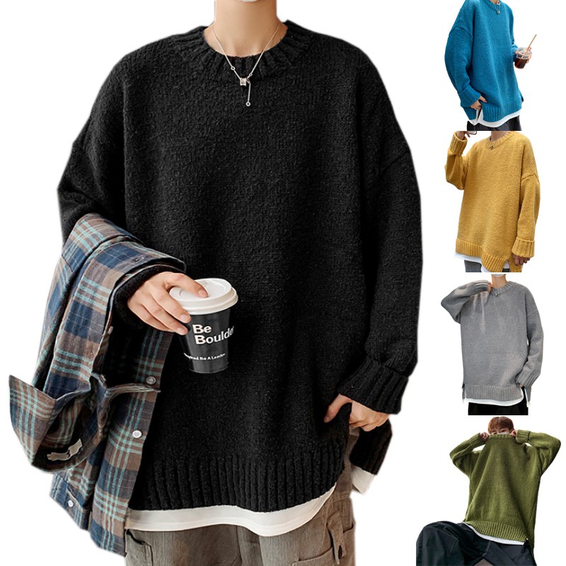 【M世代】毛衣針織衫保暖 假兩件大學T 多層次穿搭落肩T 男女情侶款 素面 素面大學T簡約毛衣(MMM26)