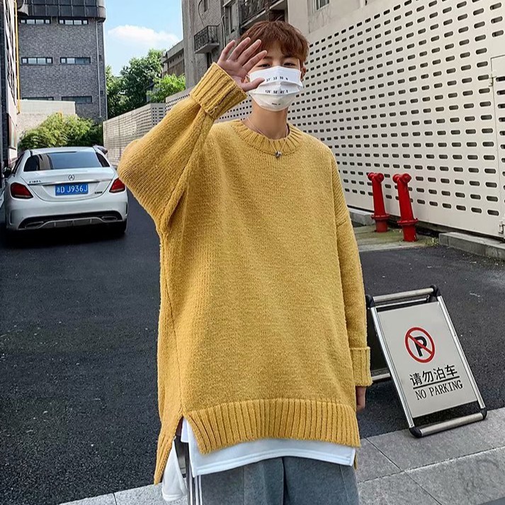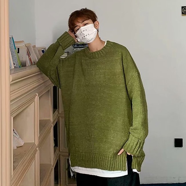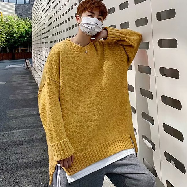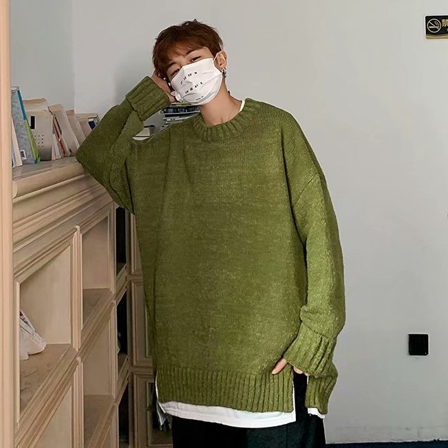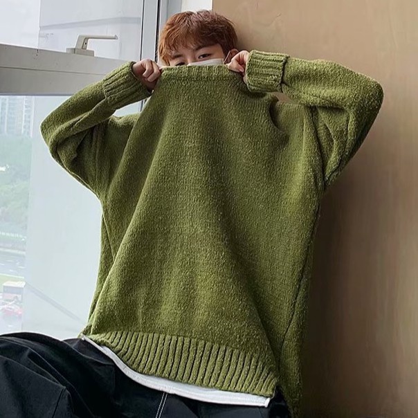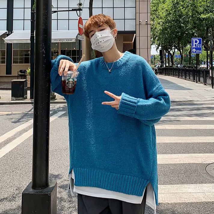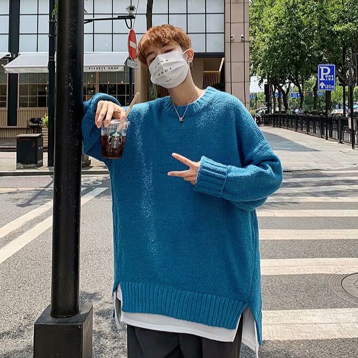 【M世代】毛衣針織衫保暖 假兩件大學T 多層次穿搭落肩T 男女情侶款 素面 素面大學T簡約毛衣(MMM26)
