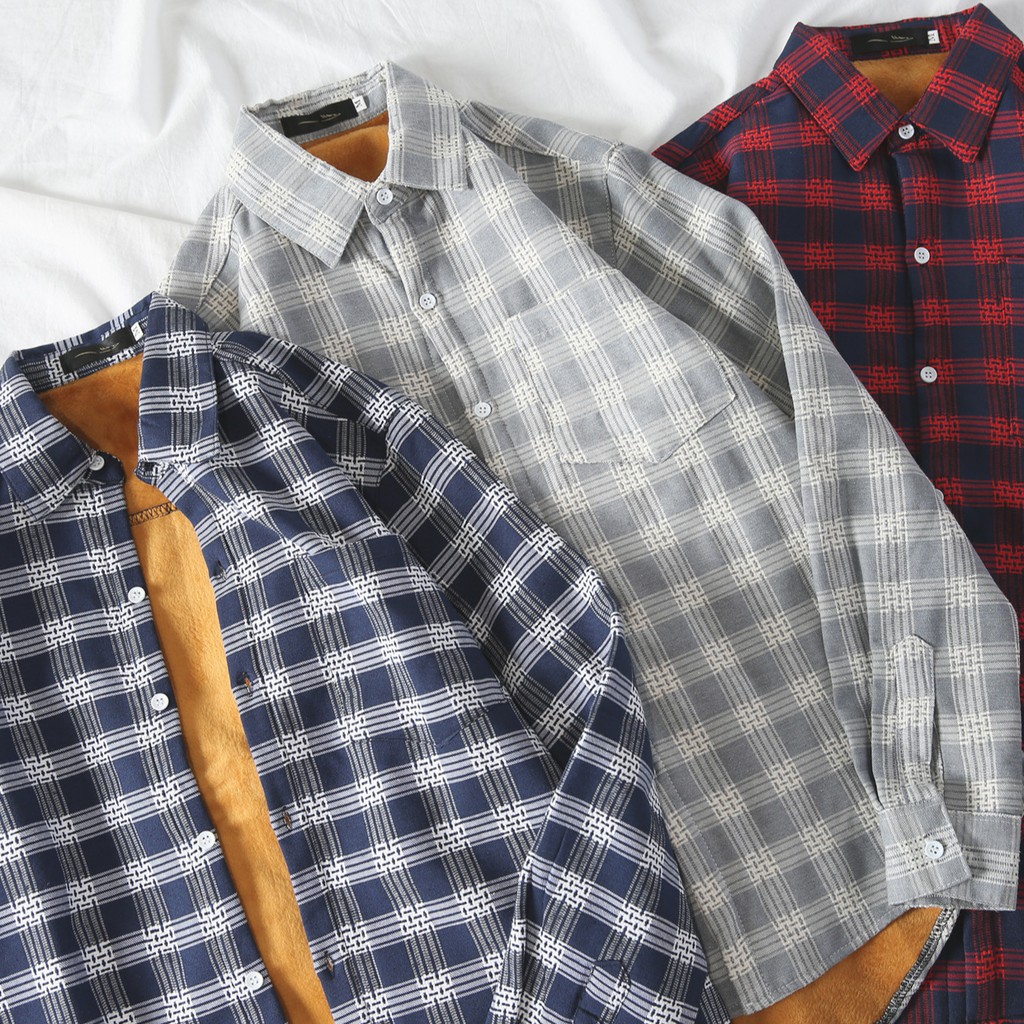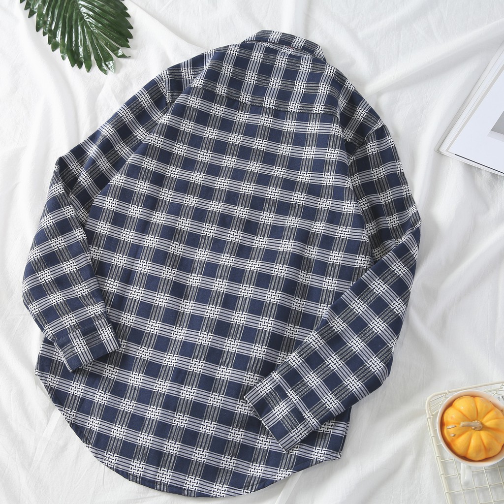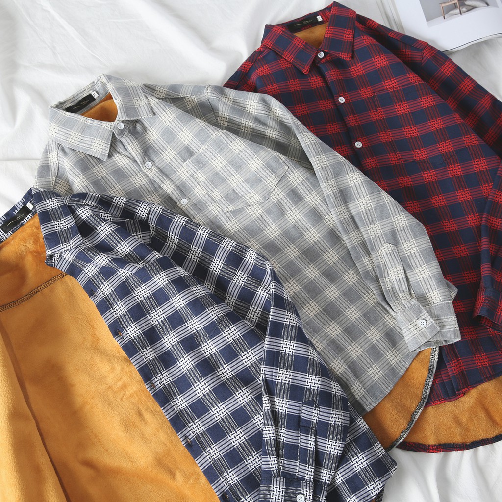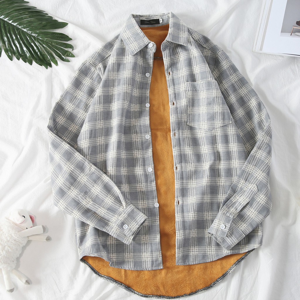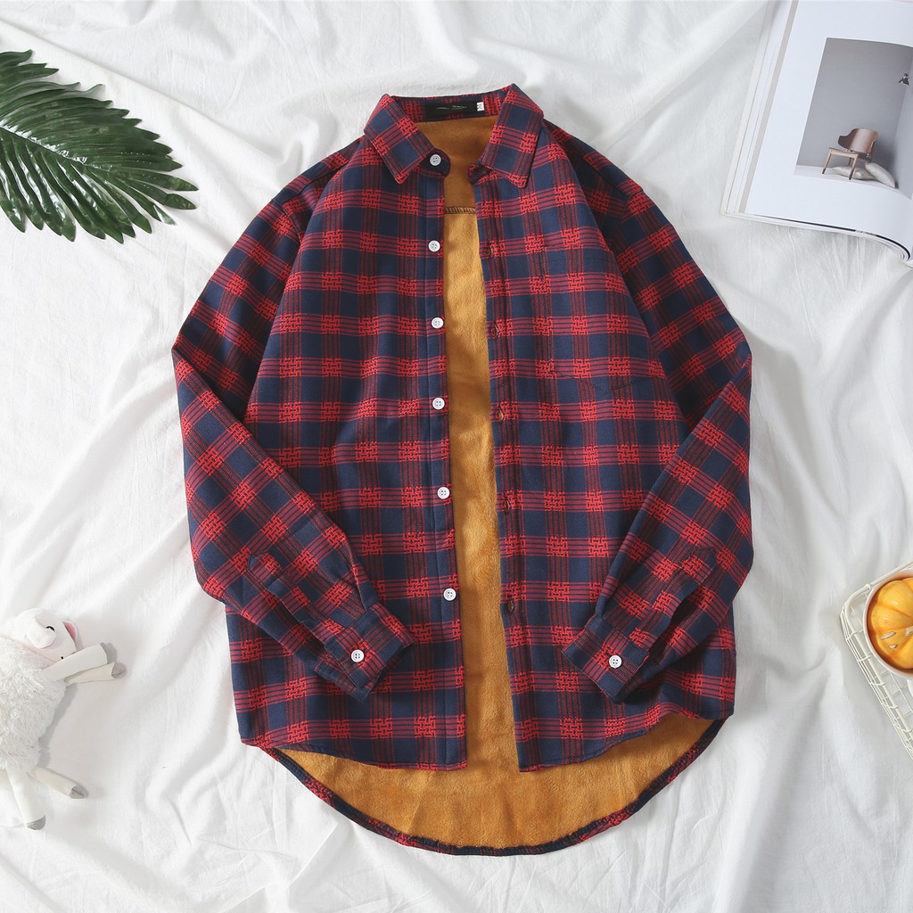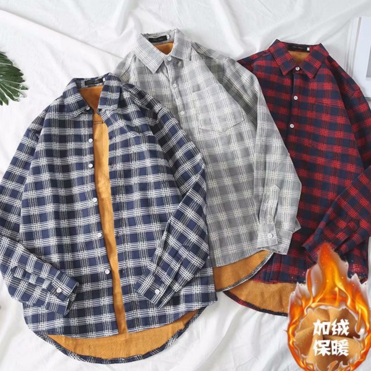 百搭格子加絨加厚 格紋長袖襯衫男女 情侶 韓版大尺碼寬鬆翻領襯衫 休閒學院風襯衣長袖衣服 正韓上衣 (JD1802)
