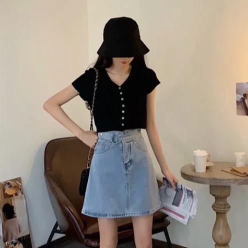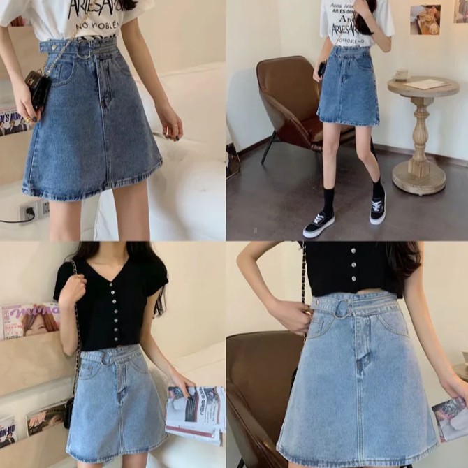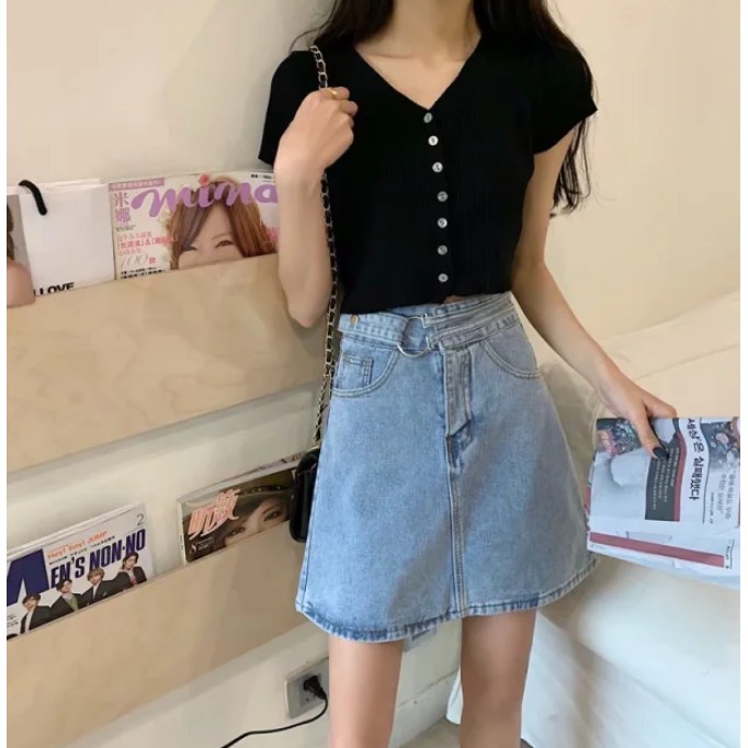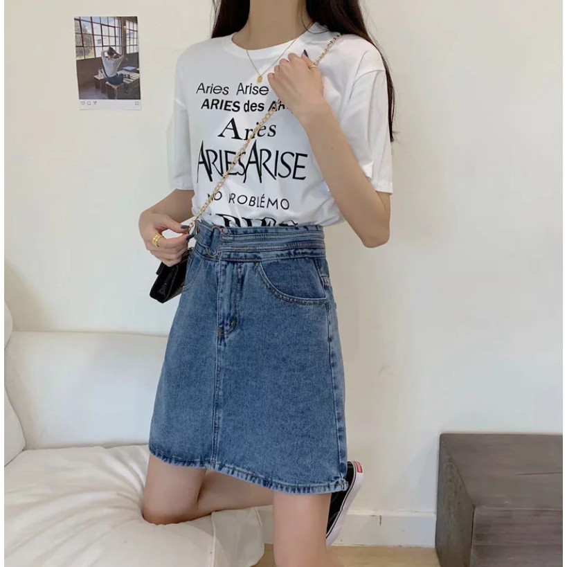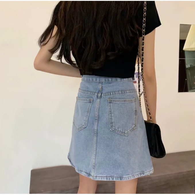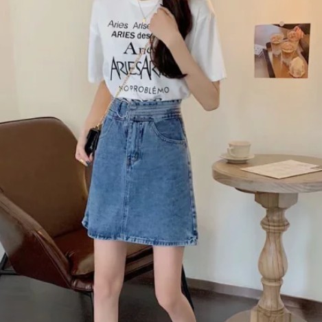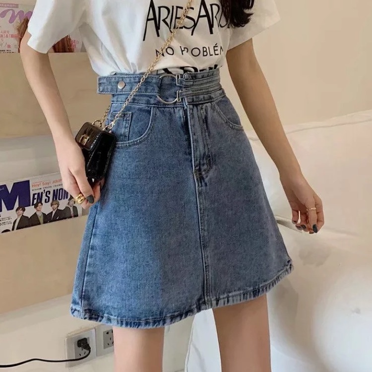 【M世代】2色大尺碼實拍側扣環單寧高腰包臀裙 牛仔裙 包裙 顯瘦修飾A字裙 短裙 高腰裙 褲裙(XGM5312)