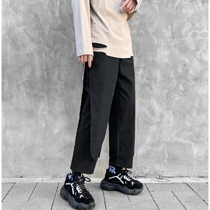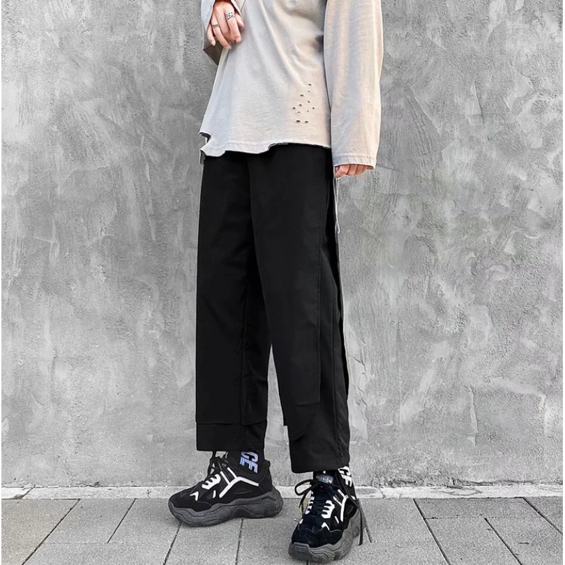 【M世代】古著感褲子男寬鬆ins墜感闊腿直筒潮流韓版復古老爹休閒拼接長褲百搭(MG224)