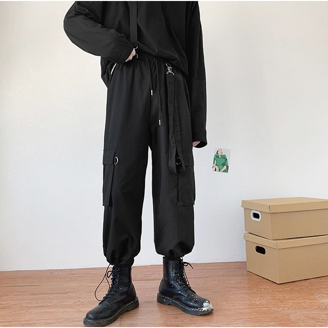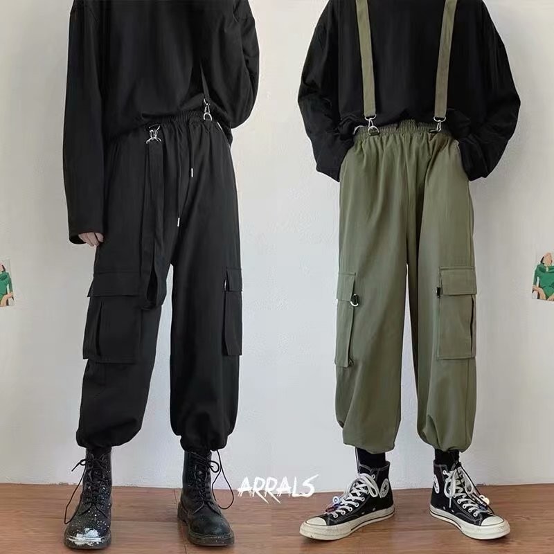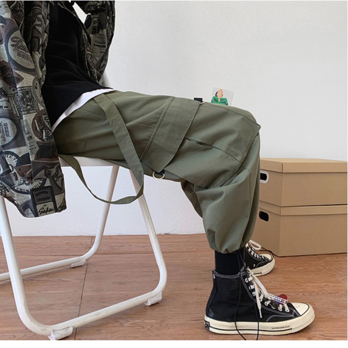 【M世代】工裝背帶褲男潮流韓版寬鬆日系闊腿長褲潮牌ins港風秋季機能吊帶褲褲子(M008)