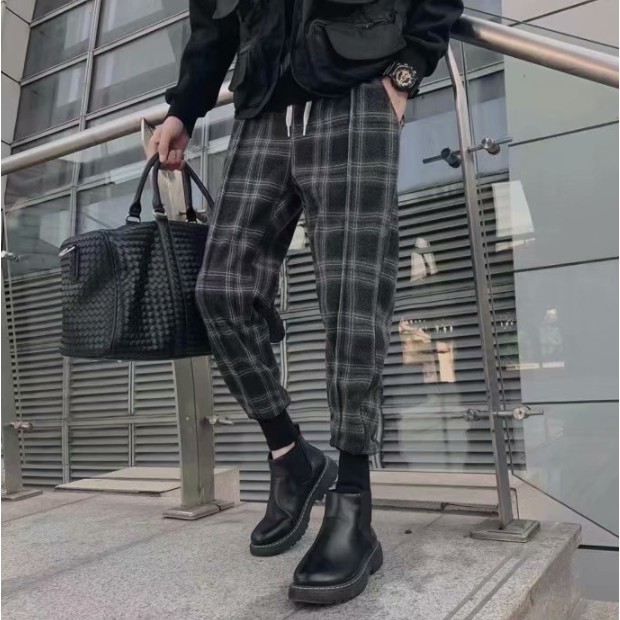 【M世代】格子褲 格紋褲 縮口褲 直筒褲 格子長褲 台灣發貨(MYJY70)