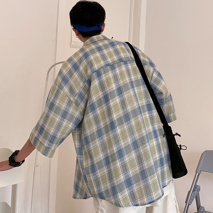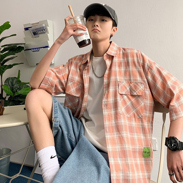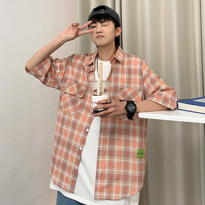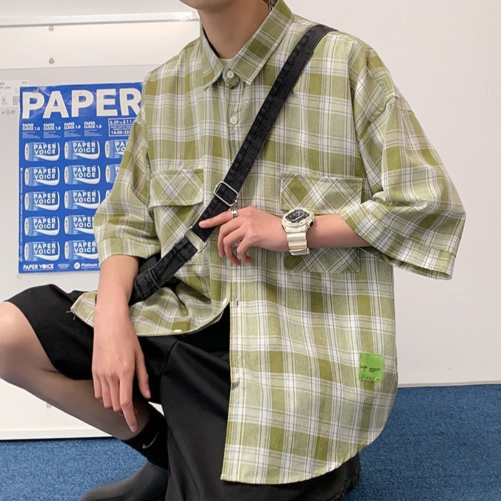 【M世代】夏季新款男原創日系運動休閒短袖襯衫 青少年格子格紋顯瘦短袖 正韓上衣 (CGCW1093)