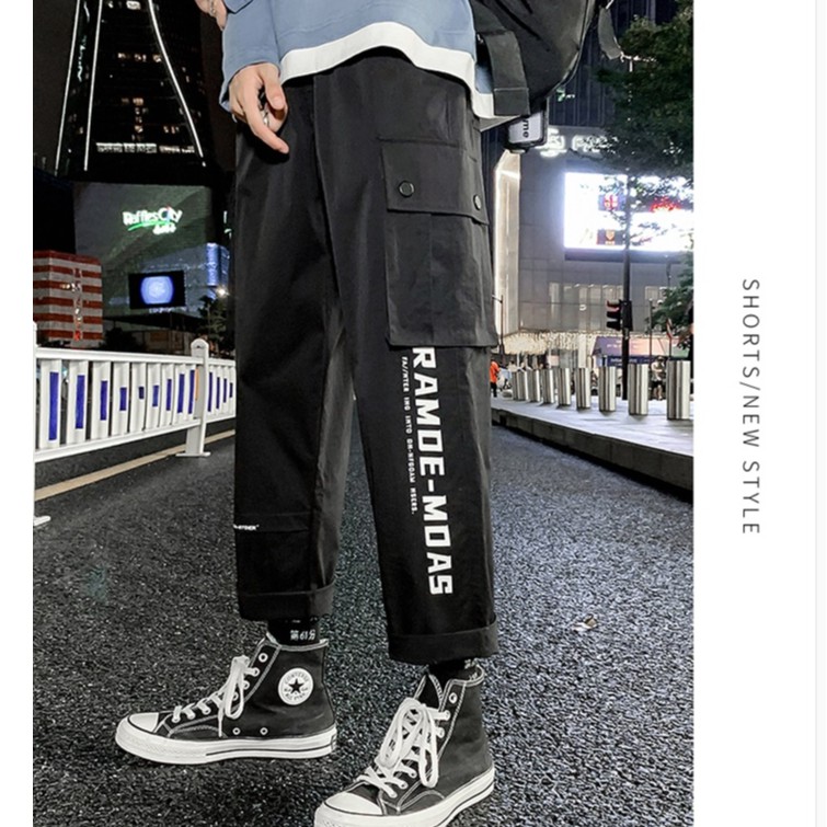 【M世代】工裝褲男 多口袋大尺碼長褲 潮牌束腳 九分褲 韓版男百搭長褲 哈倫褲 工作褲 束腳褲(MXLK25)