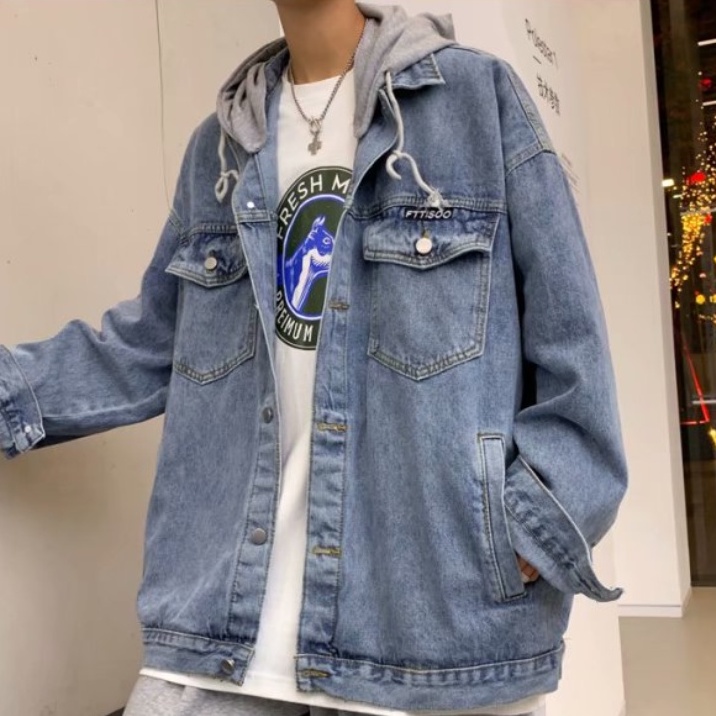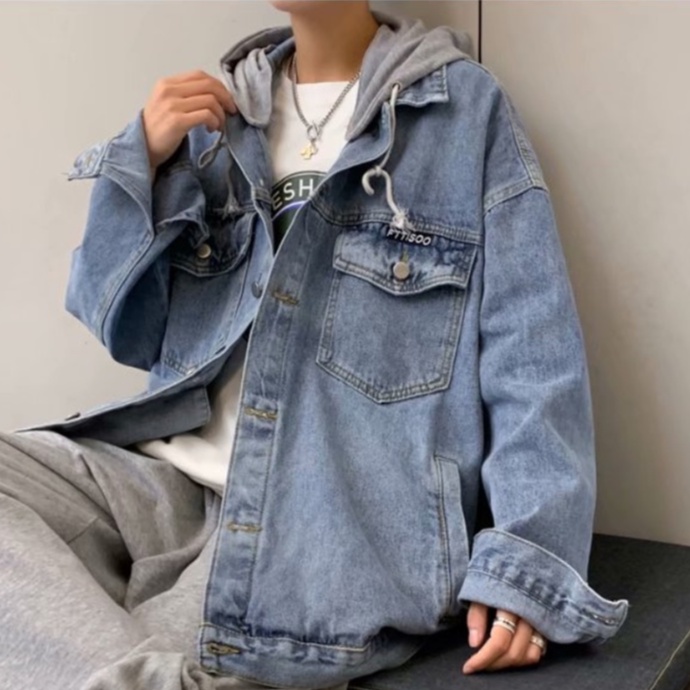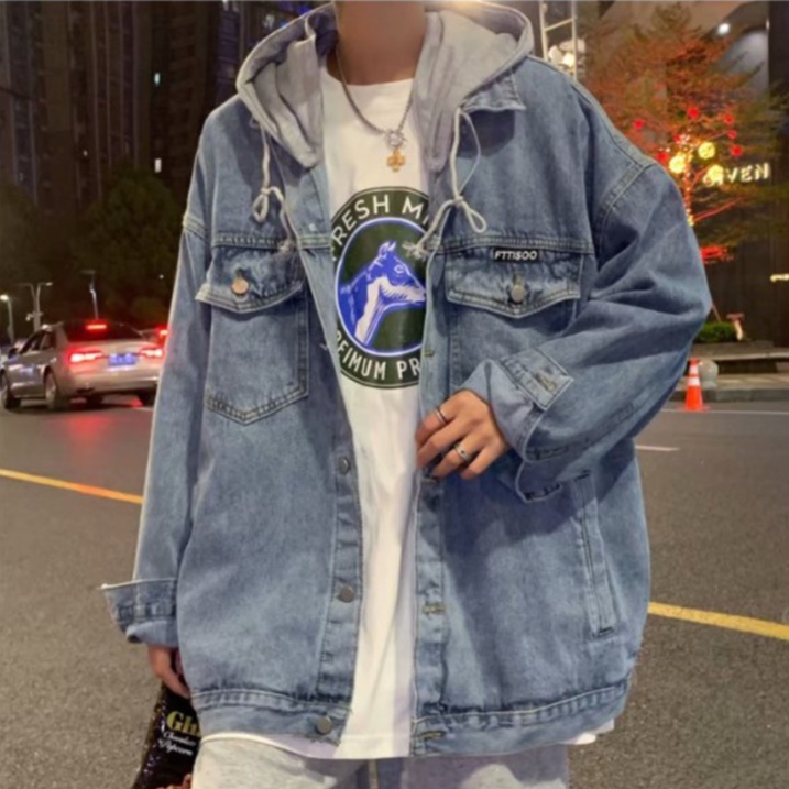 【M世代】2色大尺碼 可拆帽 連帽 牛仔外套 重磅 水洗牛仔 寬鬆 夾克 丹寧 情侶 外套 落肩 (MGCK8863)