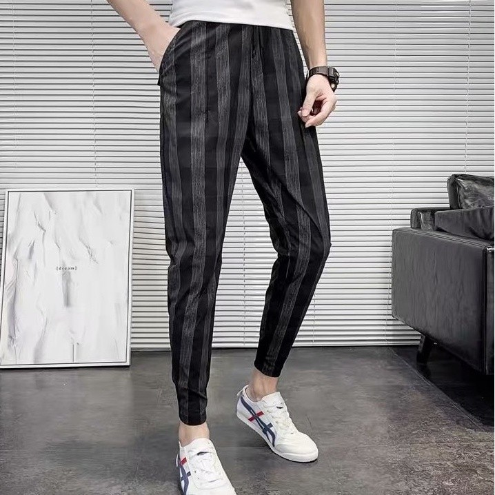 【M世代】格紋 九分褲 硬挺 彈性布料 素色 休閒長褲 窄管 格子褲 潮流必備 買到賺到 (MYJY61)