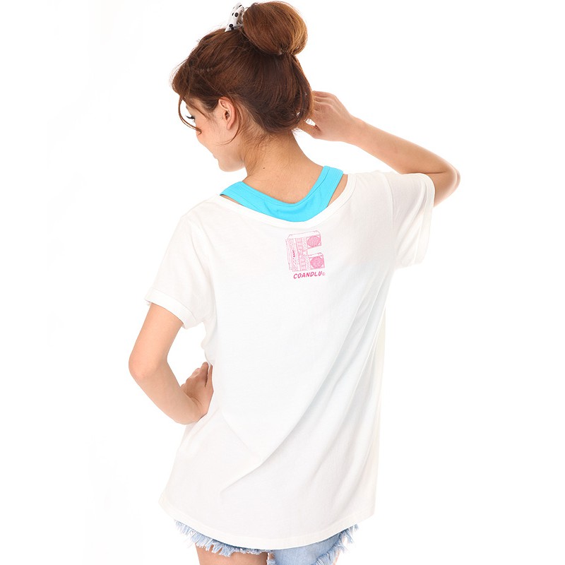 CO&LU女裝 【 C塗鴉LOGO 寬鬆版 反摺袖口 寬領短袖 T恤】限量優惠 C121-B9080 官方全新品