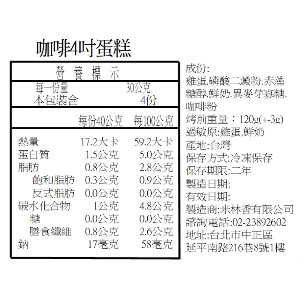 米林香 無麵粉咖啡蛋糕4/6吋 母親節蛋糕| 四吋總熱量68.8大卡|淨碳0.8g 低油脂 戚風蛋糕 超滿足