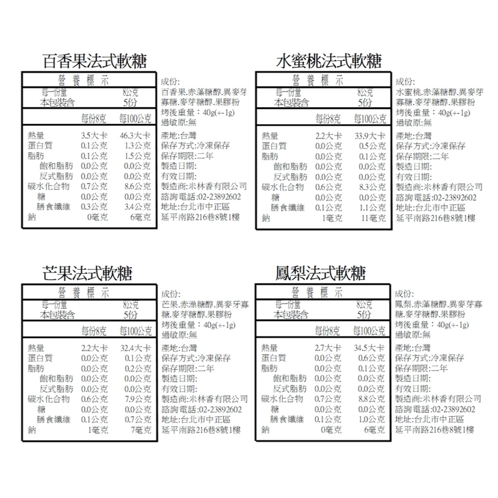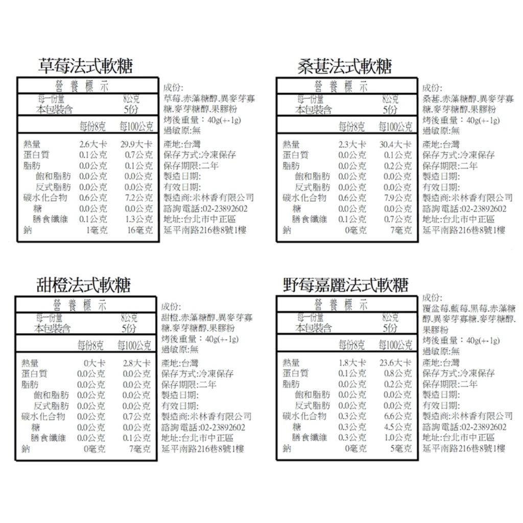 米林香 無糖新鮮水果法式軟糖5入 一入2大卡|淨碳0.4g 赤藻糖醇+麥芽糖醇