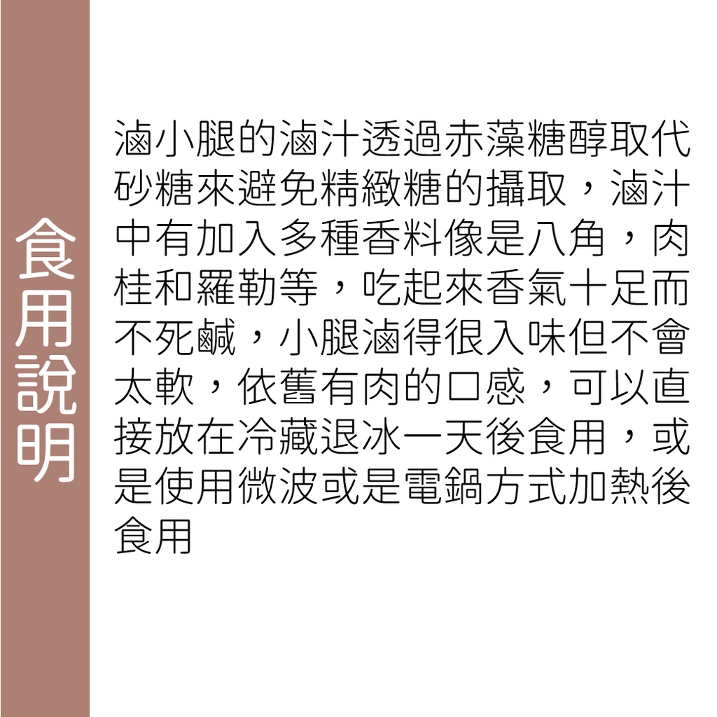米林香 無糖滷小腿 一入21大卡|淨碳1.2g 赤藻糖醇 台式加熱即食包 熟食 即時包 無糖 夜市小吃