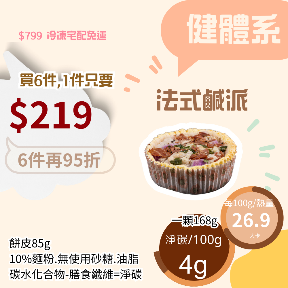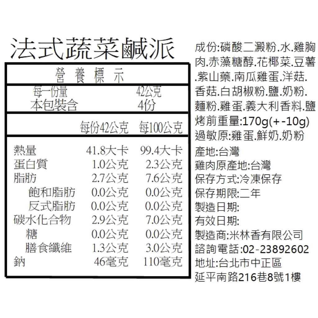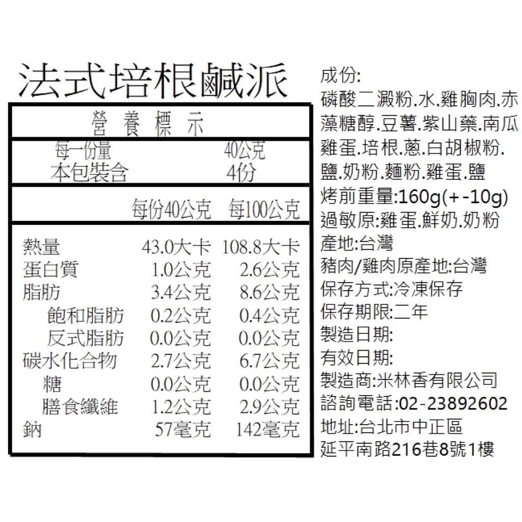 米林香 法式鹹派一整顆三吋167大卡|淨碳5.2g 取代90%麵粉 無糖油脂 超滿足 無糖甜點