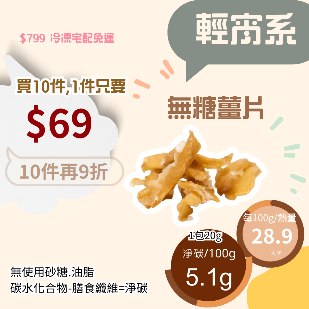 黃正宜低卡餐 無糖薑片 一包3大卡|淨碳0.6g 異麥芽寡糖 赤藻糖醇