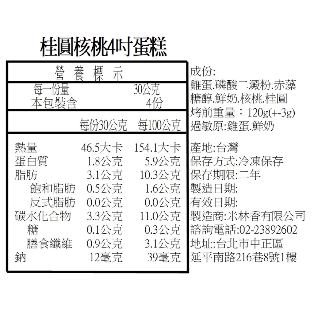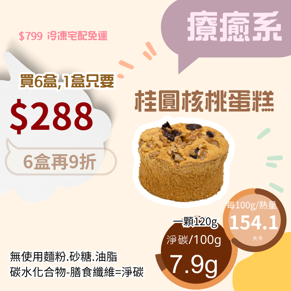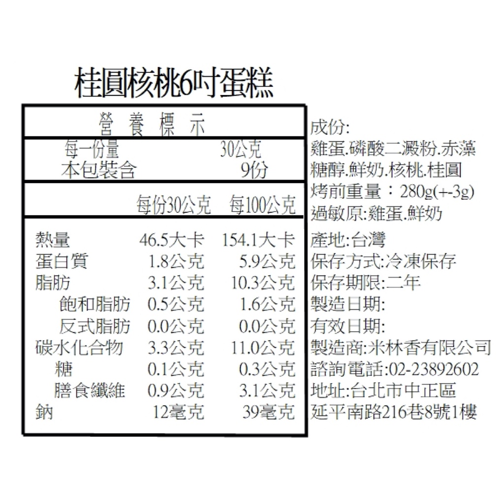 米林香 桂圓核桃無麵粉蛋糕4/6吋 母親節蛋糕|一盒四吋總熱量186大卡|淨碳9.6g 低油脂 戚風蛋糕 超滿足 甜點