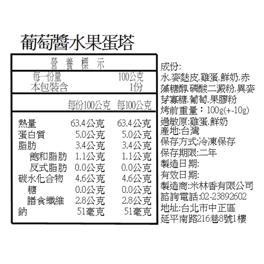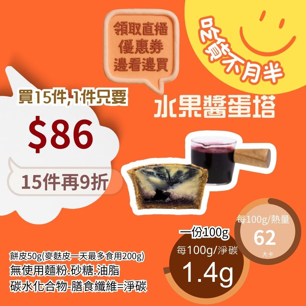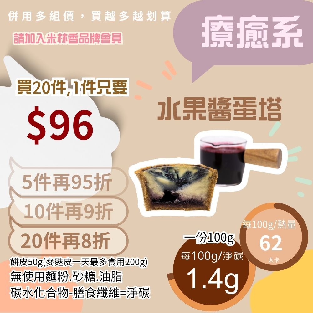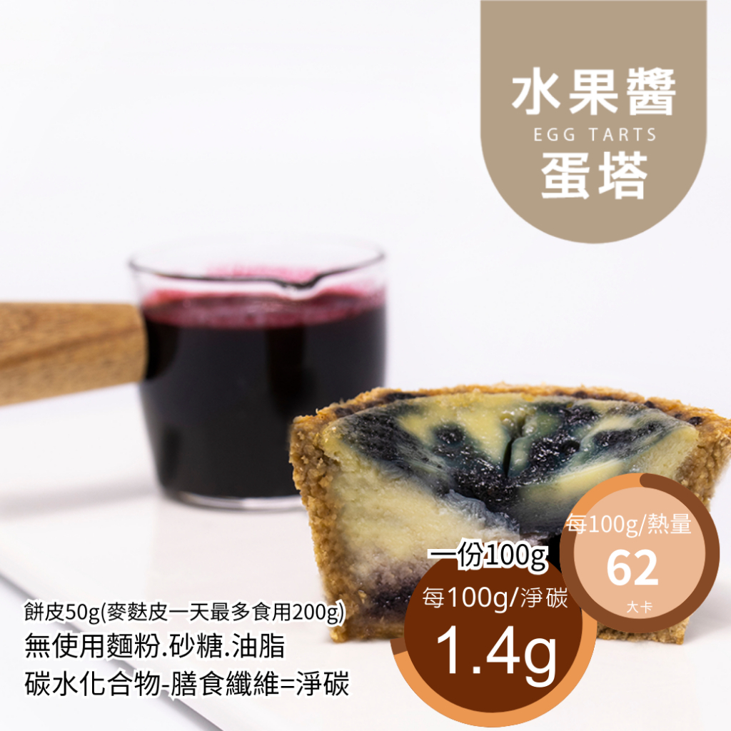 米林香 無麵粉麥麩皮水果醬蛋塔 一入63大卡|淨碳1.7g 無澱粉無蔗糖 飽足感主食 月餅 甜點