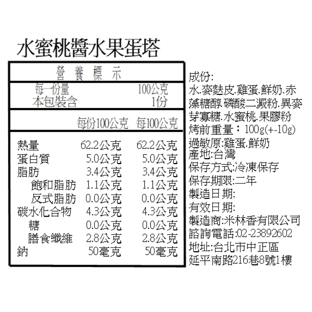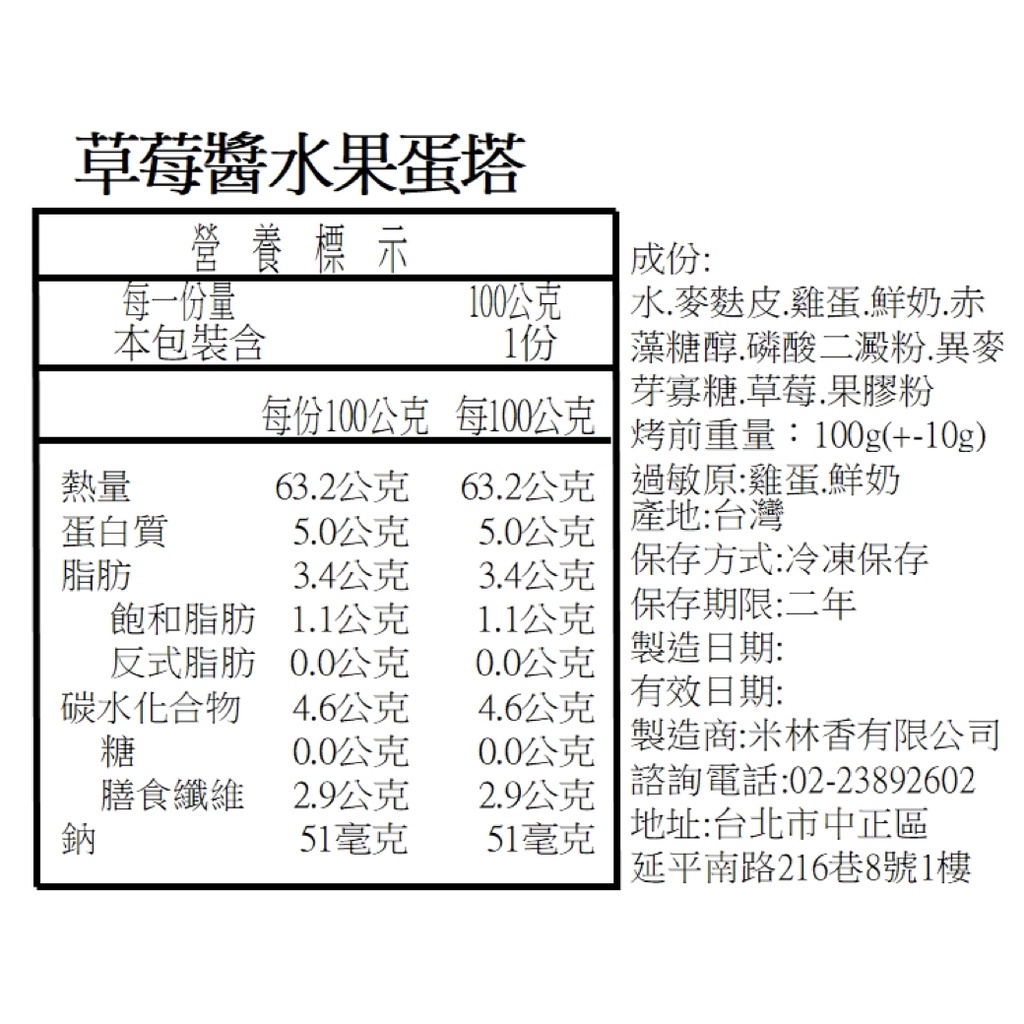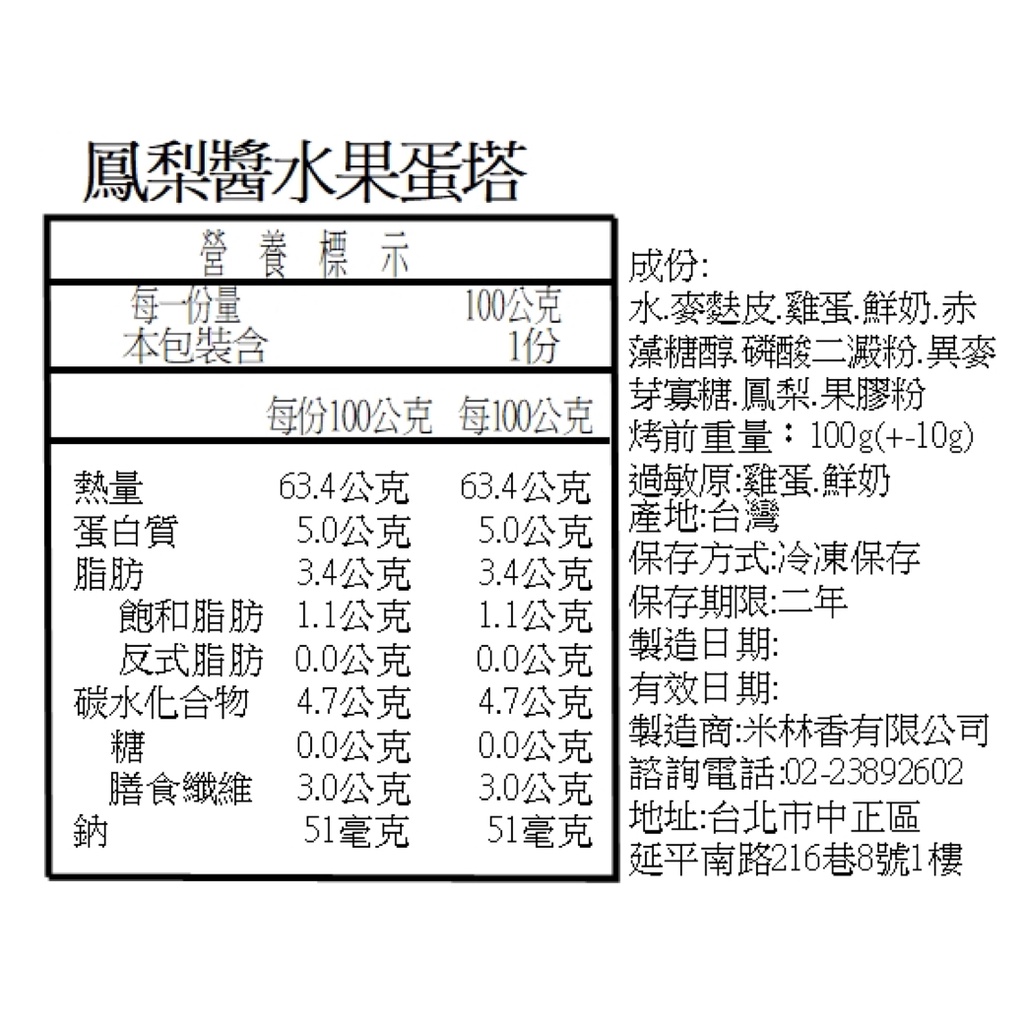 米林香 無麵粉麥麩皮水果醬蛋塔 一入63大卡|淨碳1.7g 無澱粉無蔗糖 飽足感主食 月餅 甜點