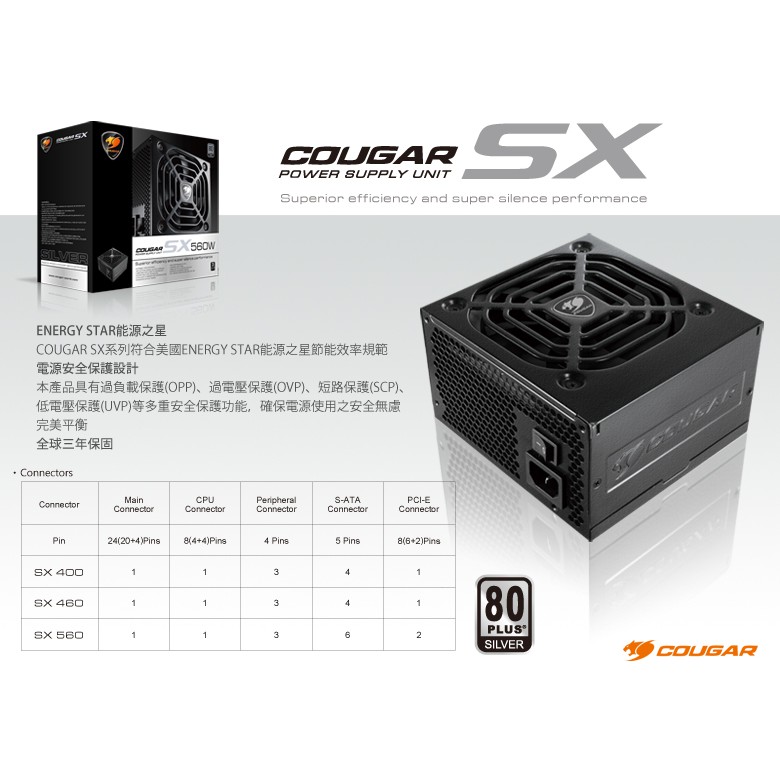 【COUGAR 美洲獅】SX系列 80PLUS銀牌電源供應器 電腦電源