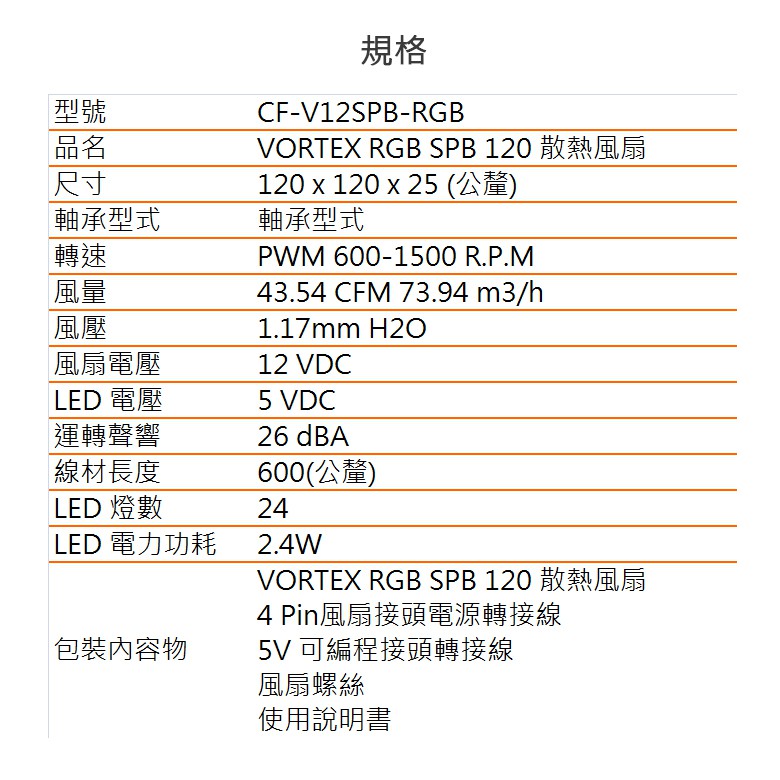 【COUGAR 美洲獅】VORTEX RGB SPB 120 PWM HDB 散熱風扇 單入