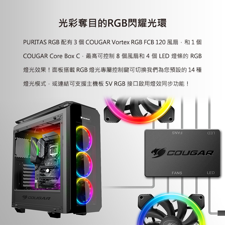 【COUGAR 美洲獅】PURITAS RGB 全鋼化玻璃中塔機殼 電腦機箱 主機殼