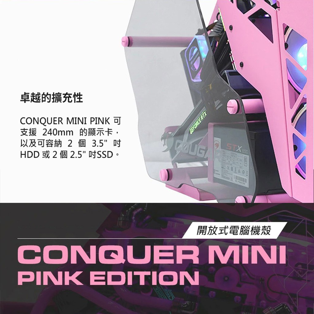 【COUGAR 美洲獅】CONQUER MINI PINK 開放式電腦機殼 電競機箱 主機殼
