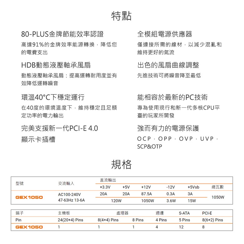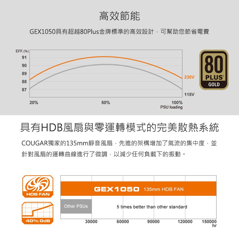 【COUGAR 美洲獅】GEX 1050w 金牌全模組電源供應器 80PLUS