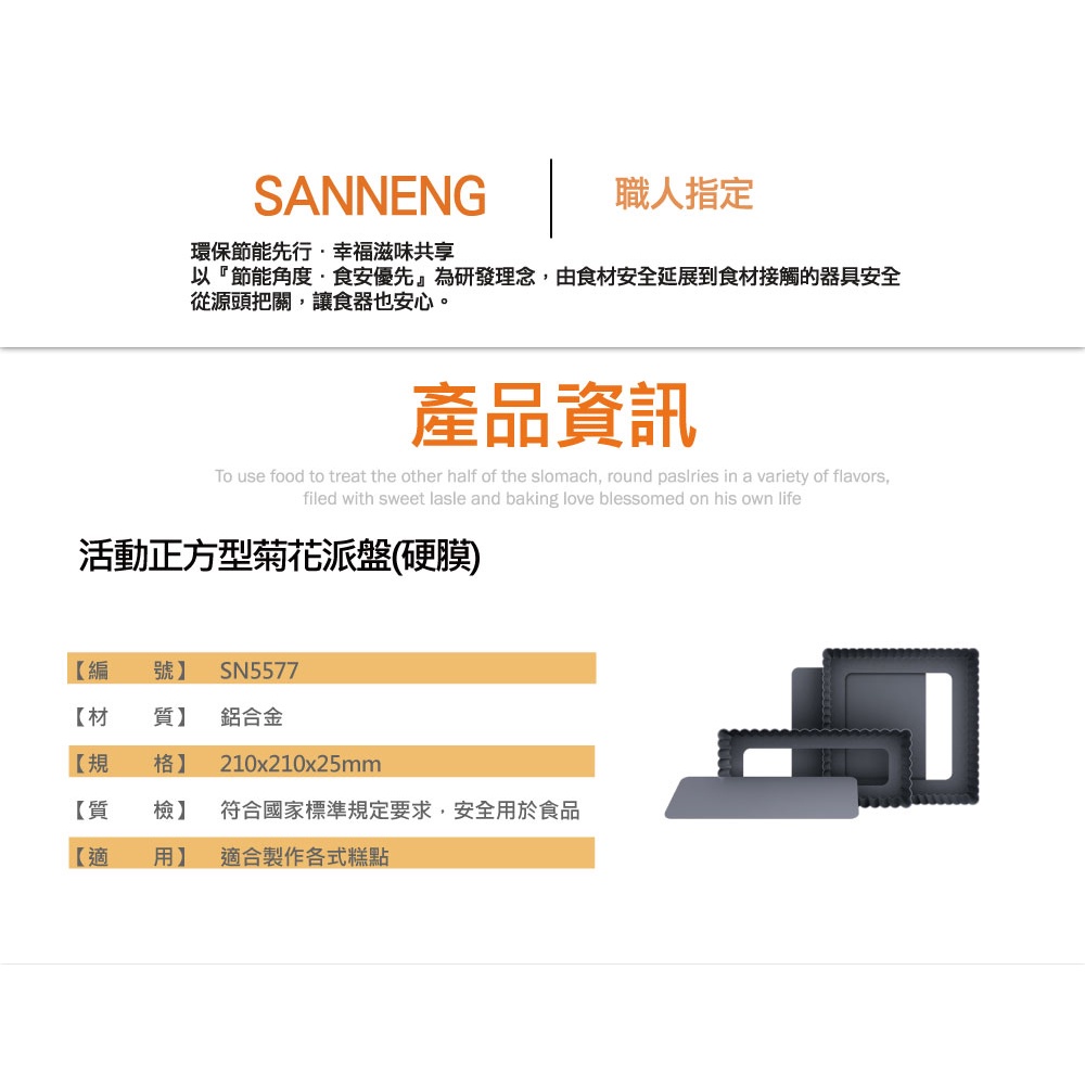 【SANNENG 三能官方】活動長方型菊花派盤-1入 硬膜 SN5574 SN5577