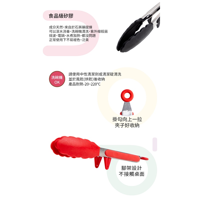 【SANNENG 三能官方】UNOPAN 屋諾 可立式矽膠耐熱料理夾-黑色UN32402/紅色UN32403