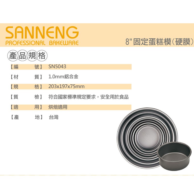 【SANNENG 三能官方】固定蛋糕模 硬膜 SN5003 SN5013 SN5023 SN5043