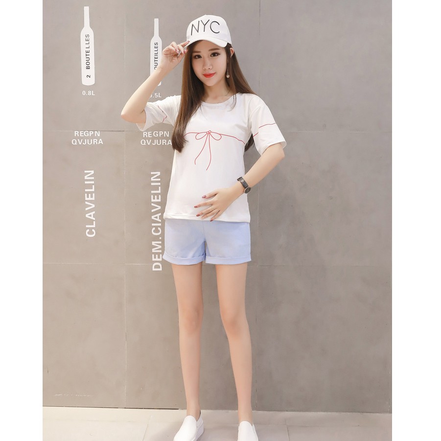 *桐心媽咪.孕婦裝*【CF0061】清新休閒.反摺素面孕婦短褲-3色