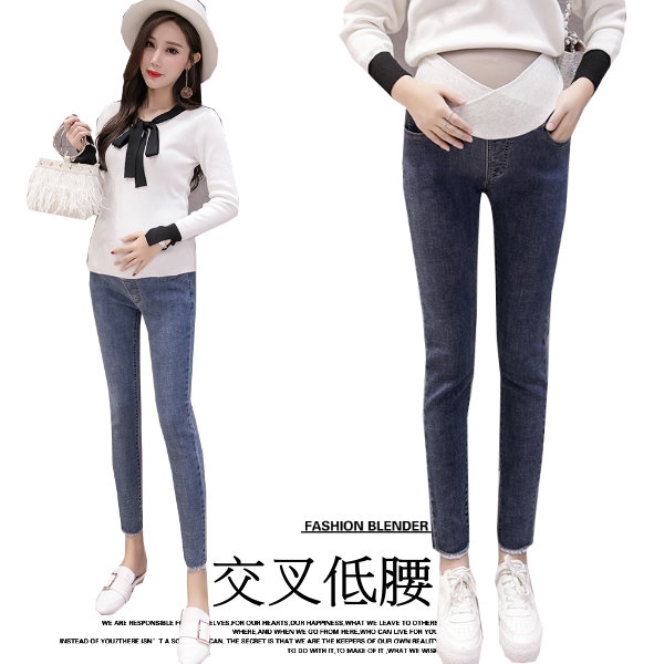 孕婦褲孕婦長褲牛仔褲交叉低腰孕婦裝【CB0086】