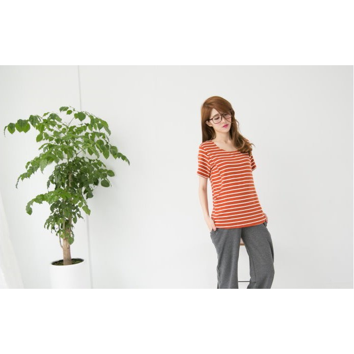 哺乳推薦款側掀圓領彈力棉短袖哺乳衣桐心媽咪孕婦裝【CA0133】