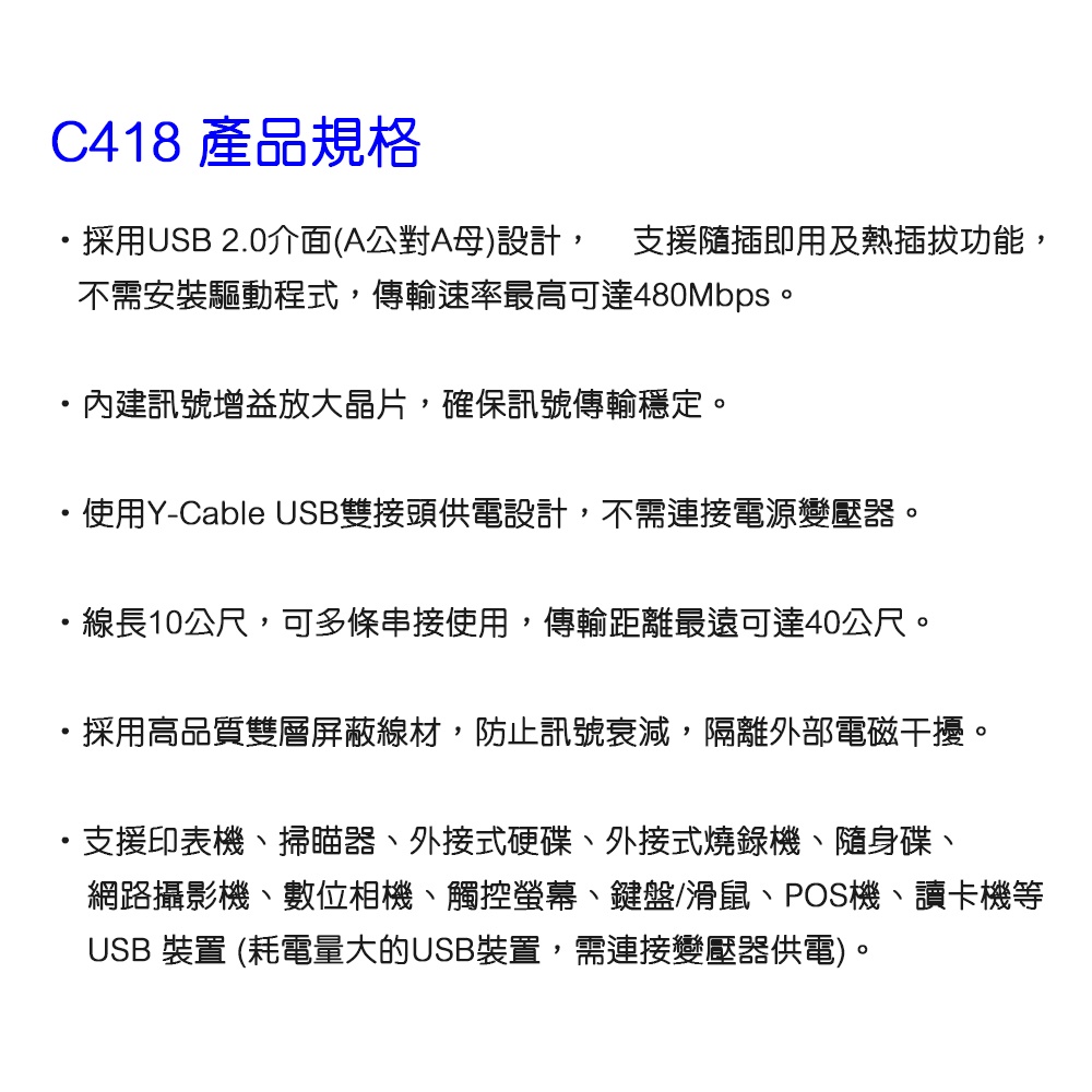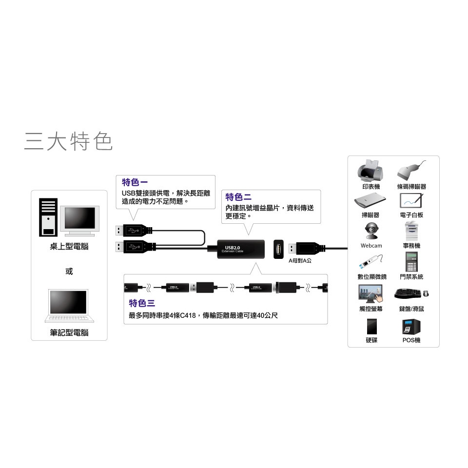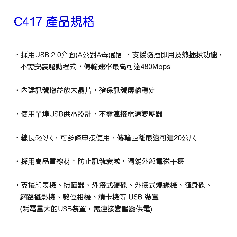 【Uptech】登昌恆 C417 C418 USB2.0訊號延伸線 延長線 訊號線 (5米.10米)