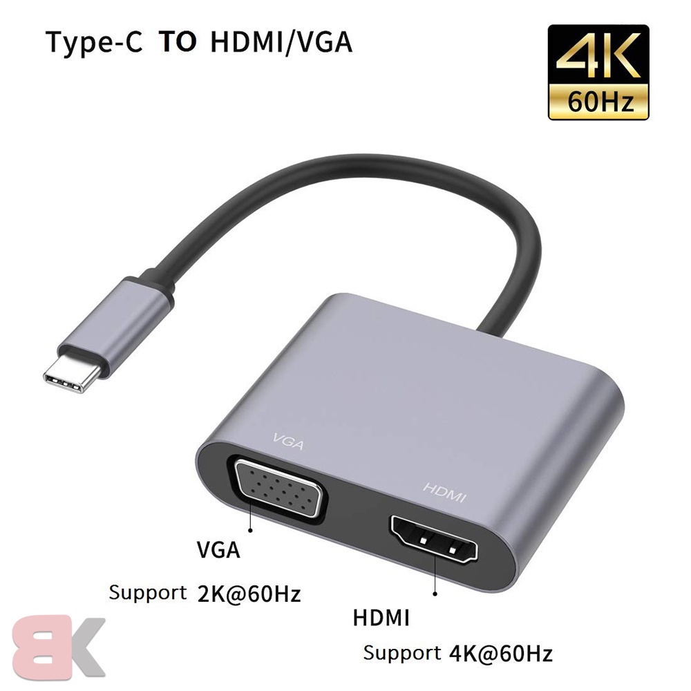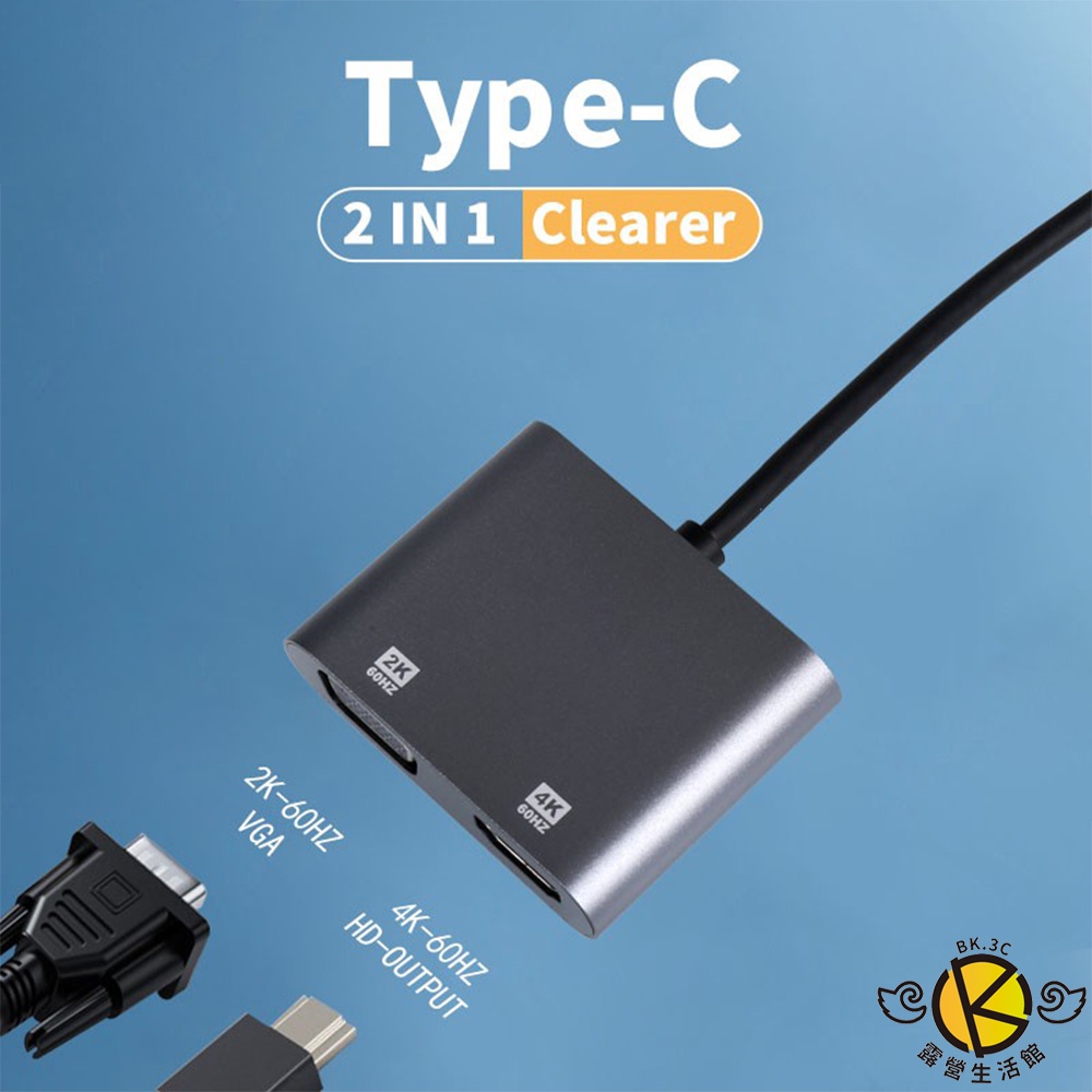 【BK.3C】2合1 Type-C 轉 VGA / HDMI 同屏器 轉換器 鏡像輸出 視訊教學 線上教學