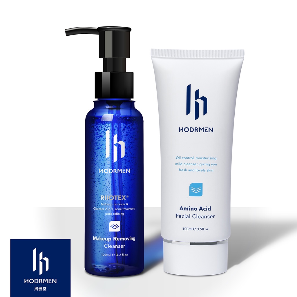 HODRMEN男研堂【早胺晚卸極淨組】臉部清潔加強組 胺基酸洗面乳100ml+多爪毛孔洗卸凝露120ml