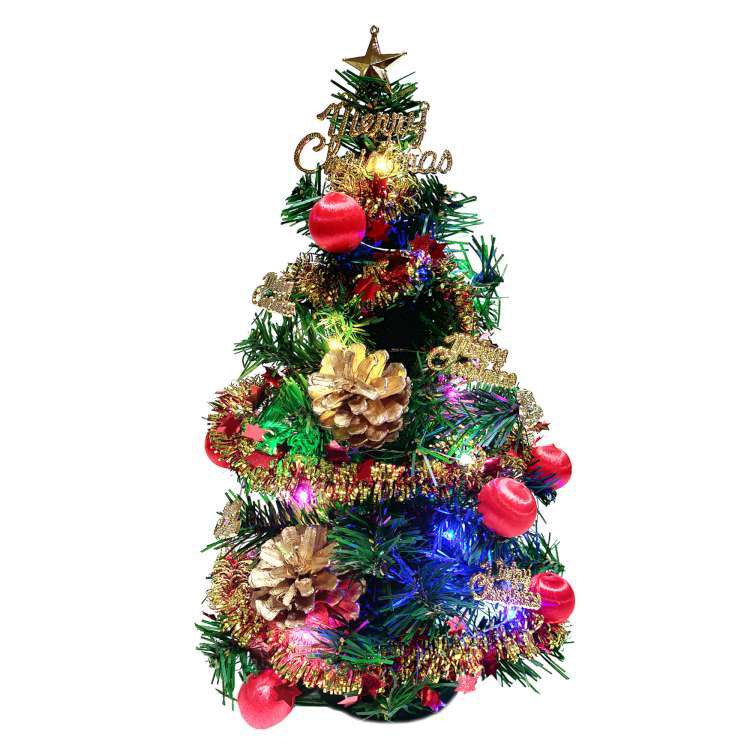 【耶誕派對】台灣製迷你1尺 裝飾聖誕樹(紅金松果色系)(含LED20燈銅線燈(彩光/USB電池兩用充電)