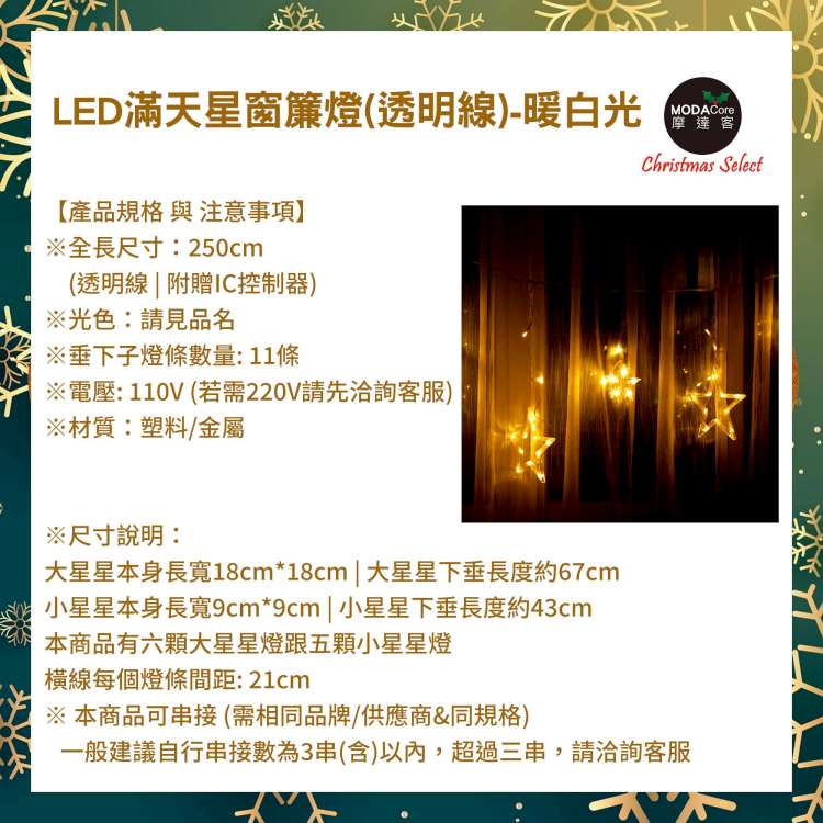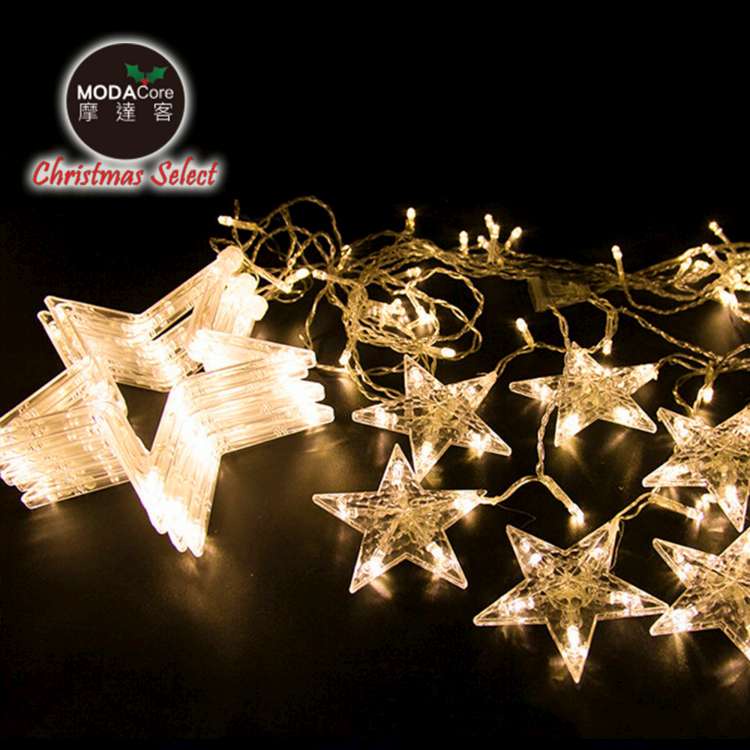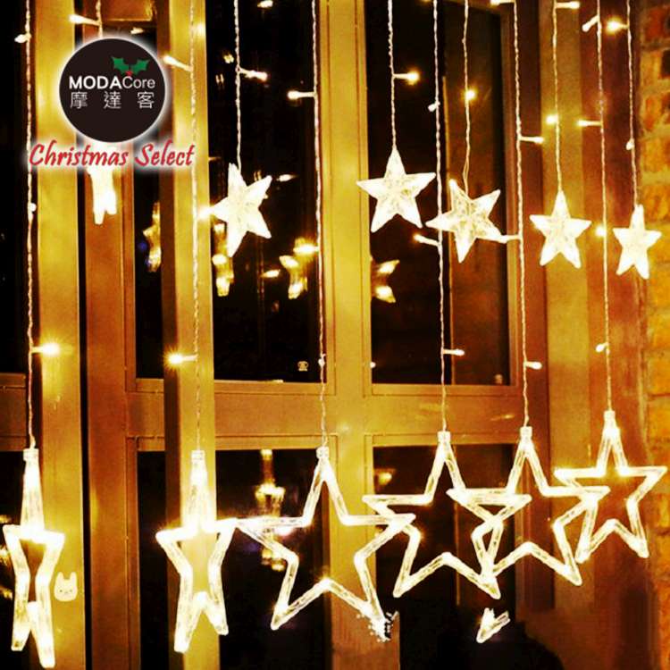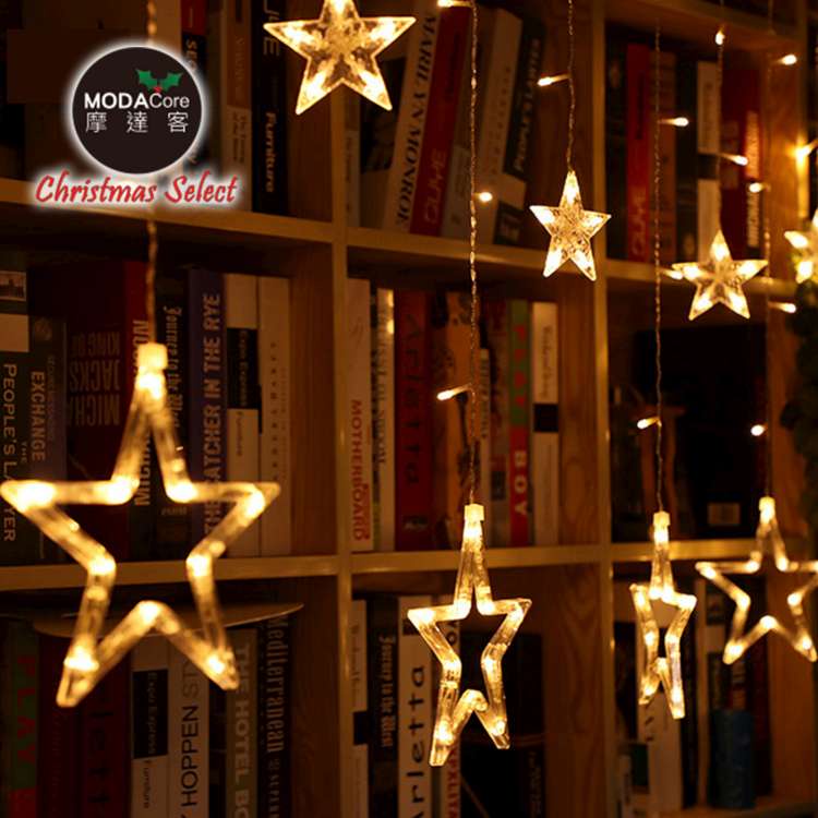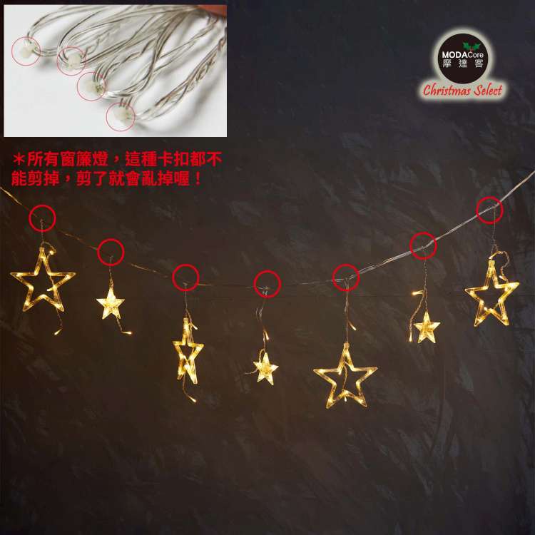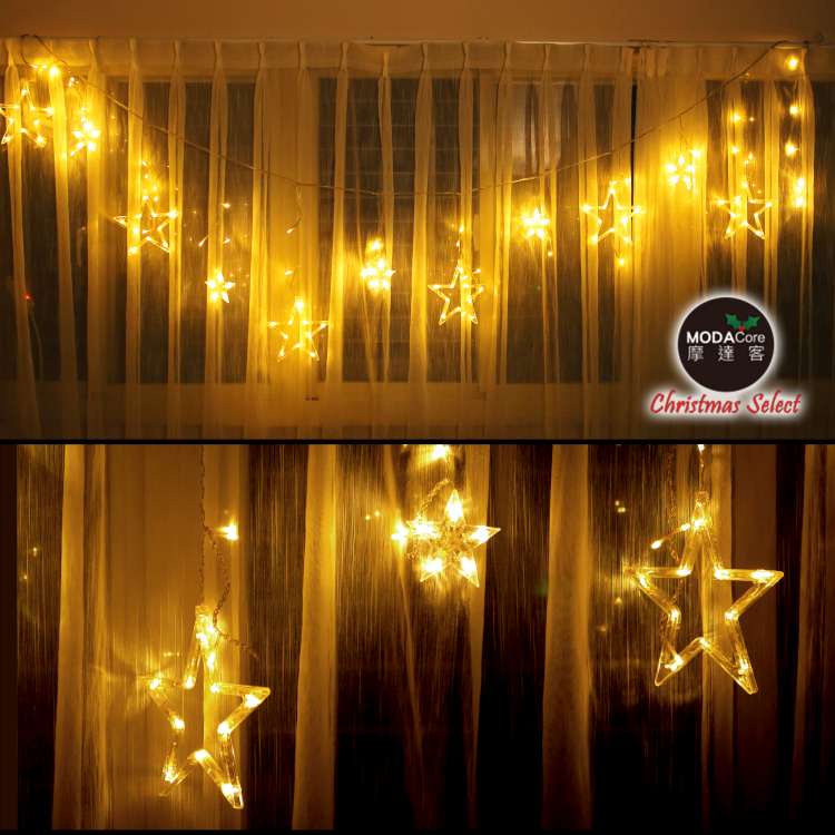 摩達客-LED燈造型滿天星星窗簾燈聖誕情境燈_暖白光透明線 | 附贈IC控制器_插電式 (本島免運費)
