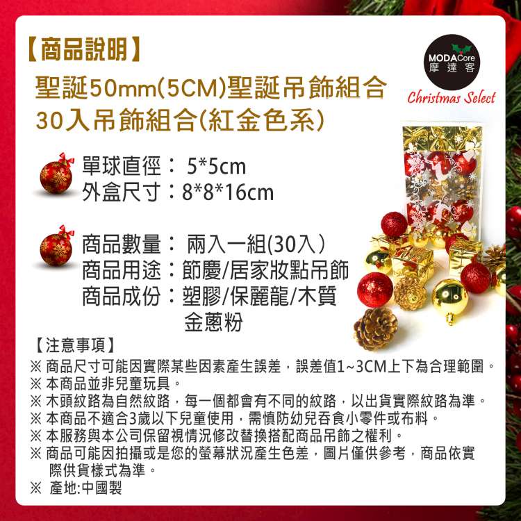 【耶誕佈置】聖誕50mm(5CM)紅金系30入吊飾組(松果禮物盒球飾) | 聖誕樹裝飾球飾掛飾