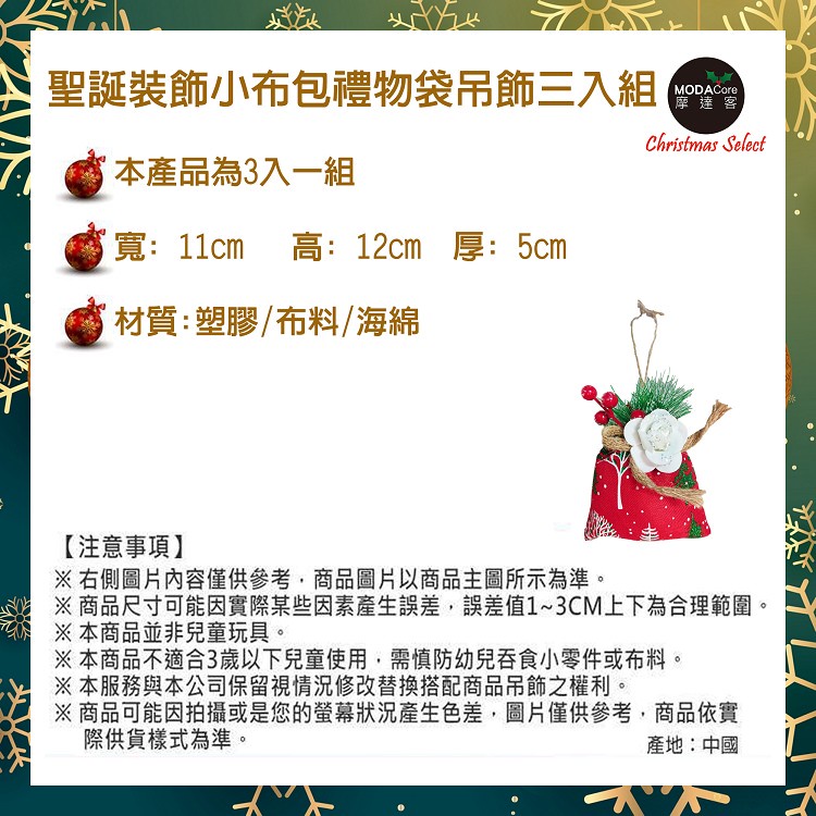 【耶誕佈置】聖誕裝飾小布包禮物袋吊飾三入組-紅色系