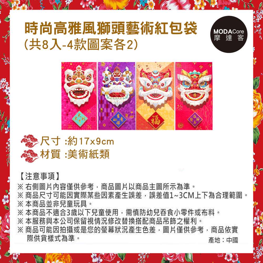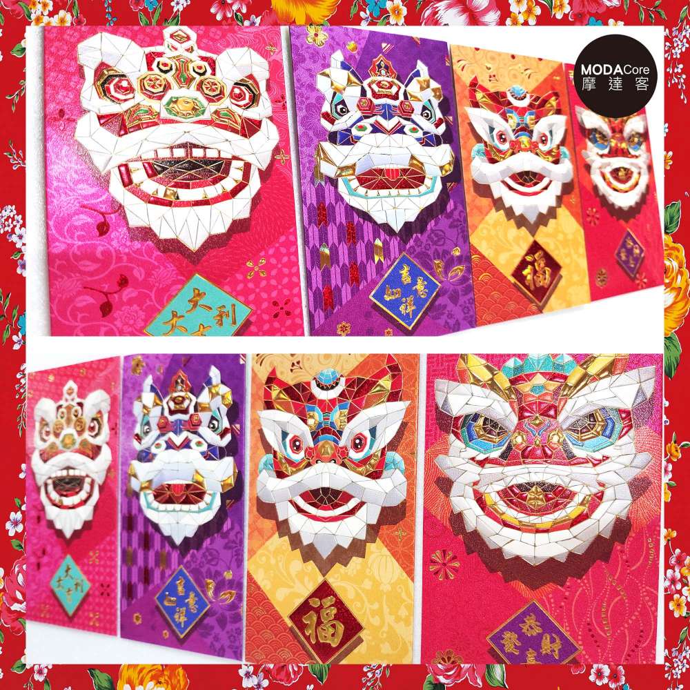 【農曆新年春節】時尚彩色高雅風獅頭藝術紅包袋(8入)