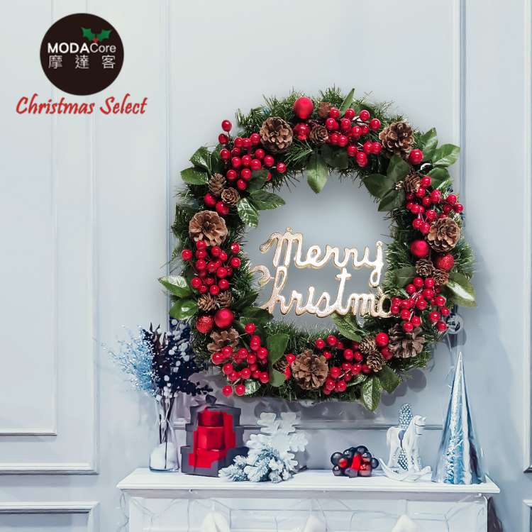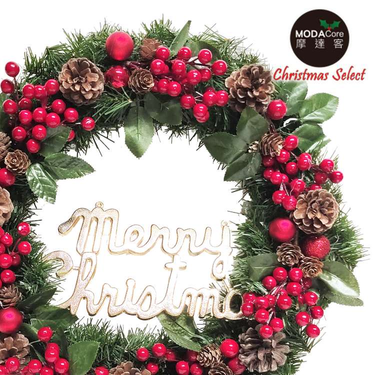 摩達客耶誕-台灣製歐風典雅20吋大地盛宴紅球果松果聖誕花圈_福臨圈(免組裝/台灣設計手工藝製)