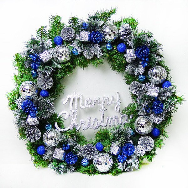 摩達客耶誕-台灣製24吋 豪華高級聖誕花圈(藍銀色系)(台灣手工組裝出貨)