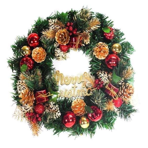 摩達客耶誕-台灣製14吋豪華高級綠色聖誕花圈(紅金色系)(台灣手工組裝)