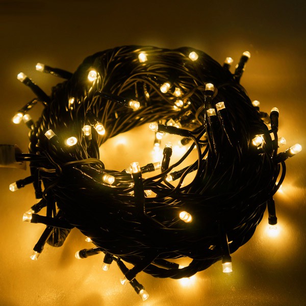 摩達客-100燈LED燈串聖誕燈 (暖白光黑線)(附控制器跳機)(高亮度又省電)