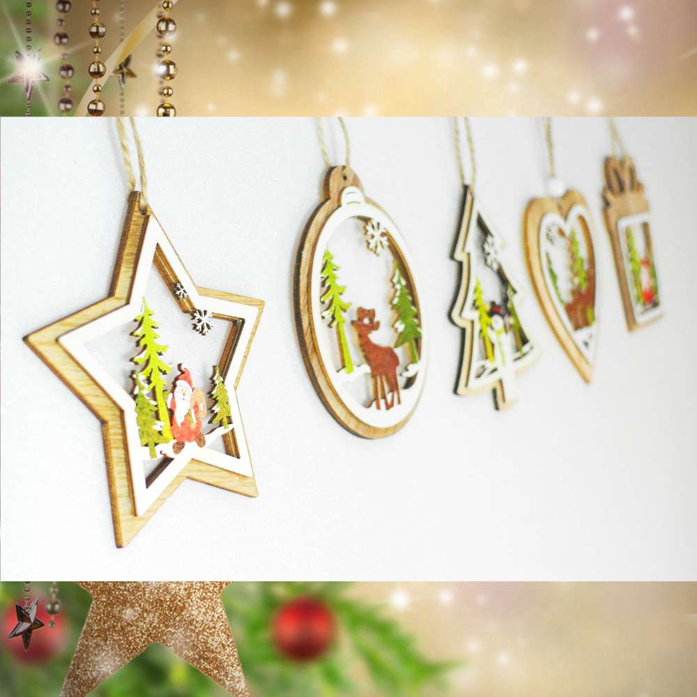 【耶誕擺飾】木質彩繪圖案風格聖誕吊飾-五入組