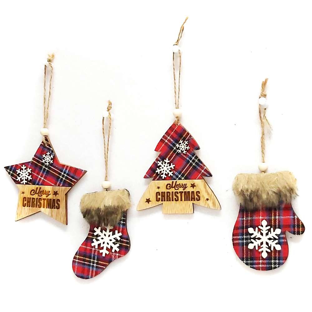 【耶誕擺飾】木質蘇格蘭格紋風彩繪迷你聖誕襪吊飾-四入組