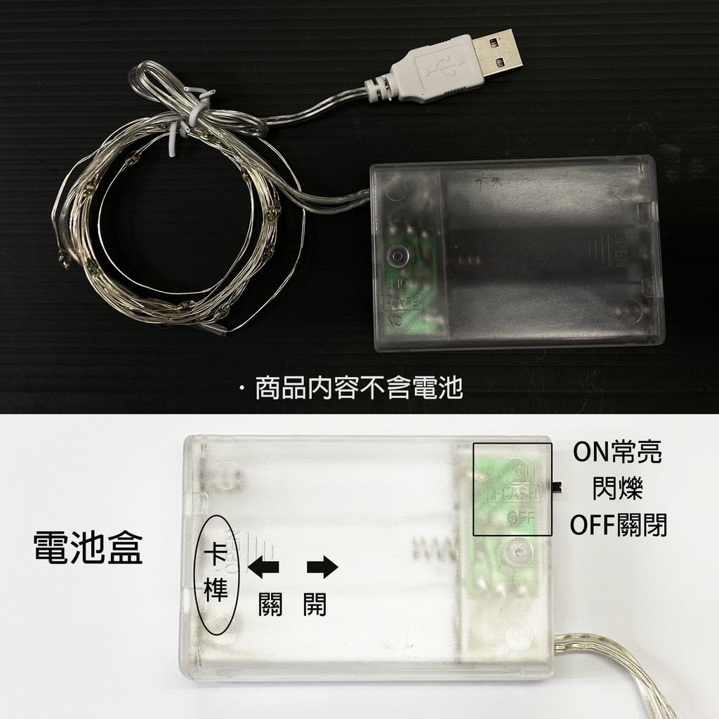 摩達客-50燈LED銅線燈串暖白光-USB電池盒兩用充電-浪漫星星燈聖誕燈串