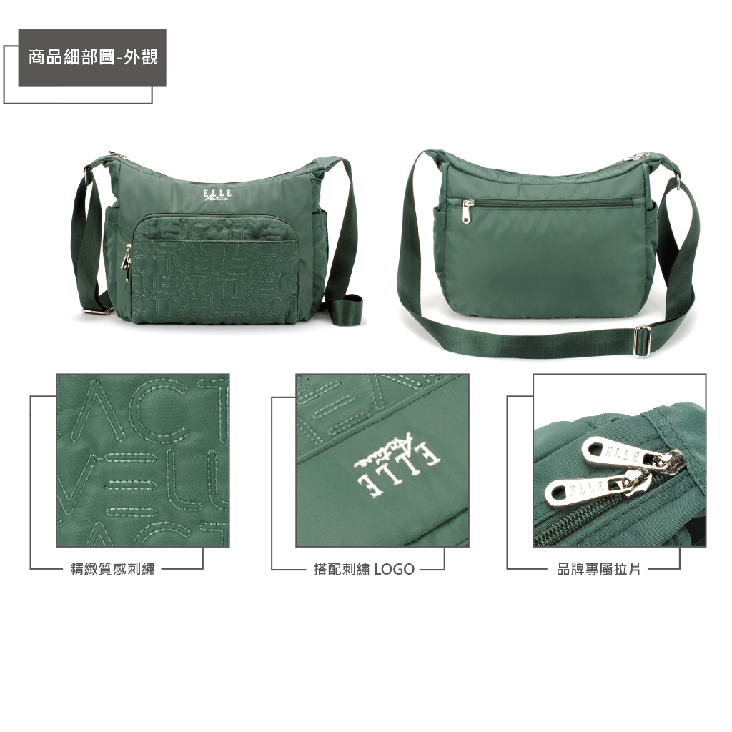【ELLE Active】繁花世界系列-側背包/斜背包-綠色