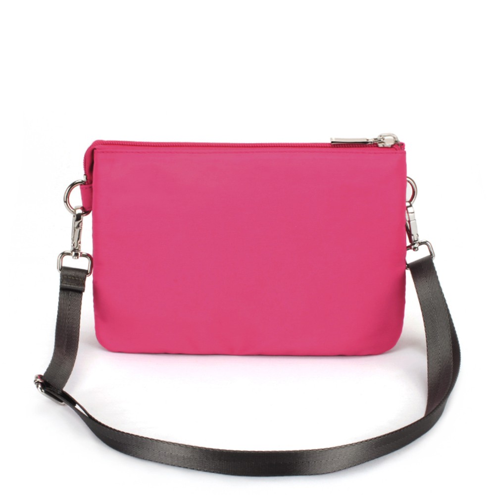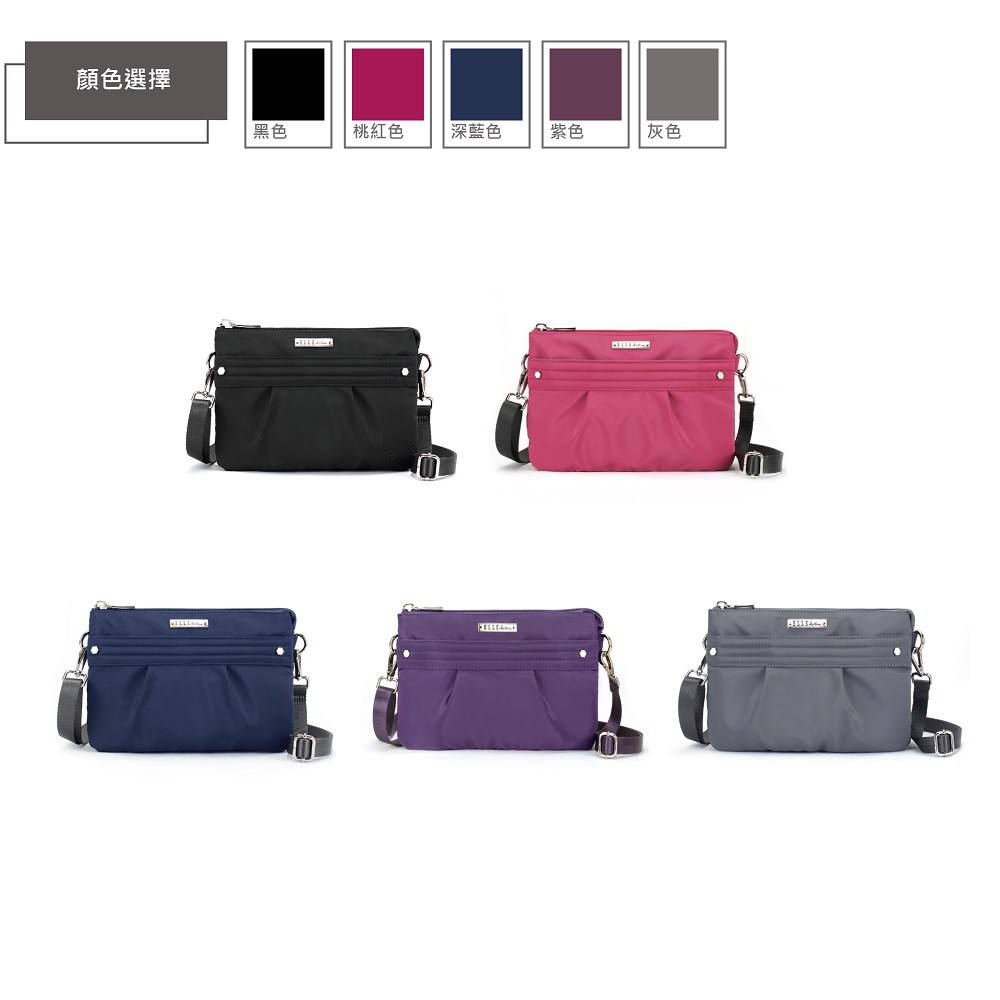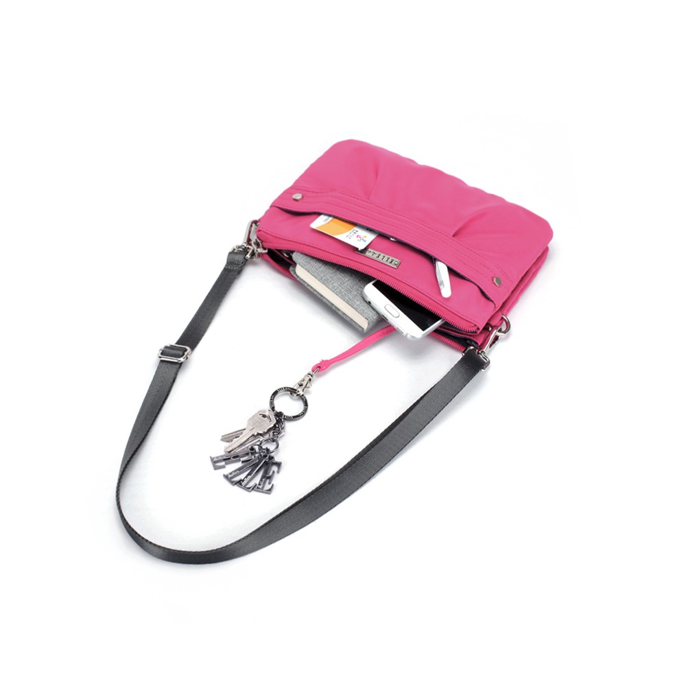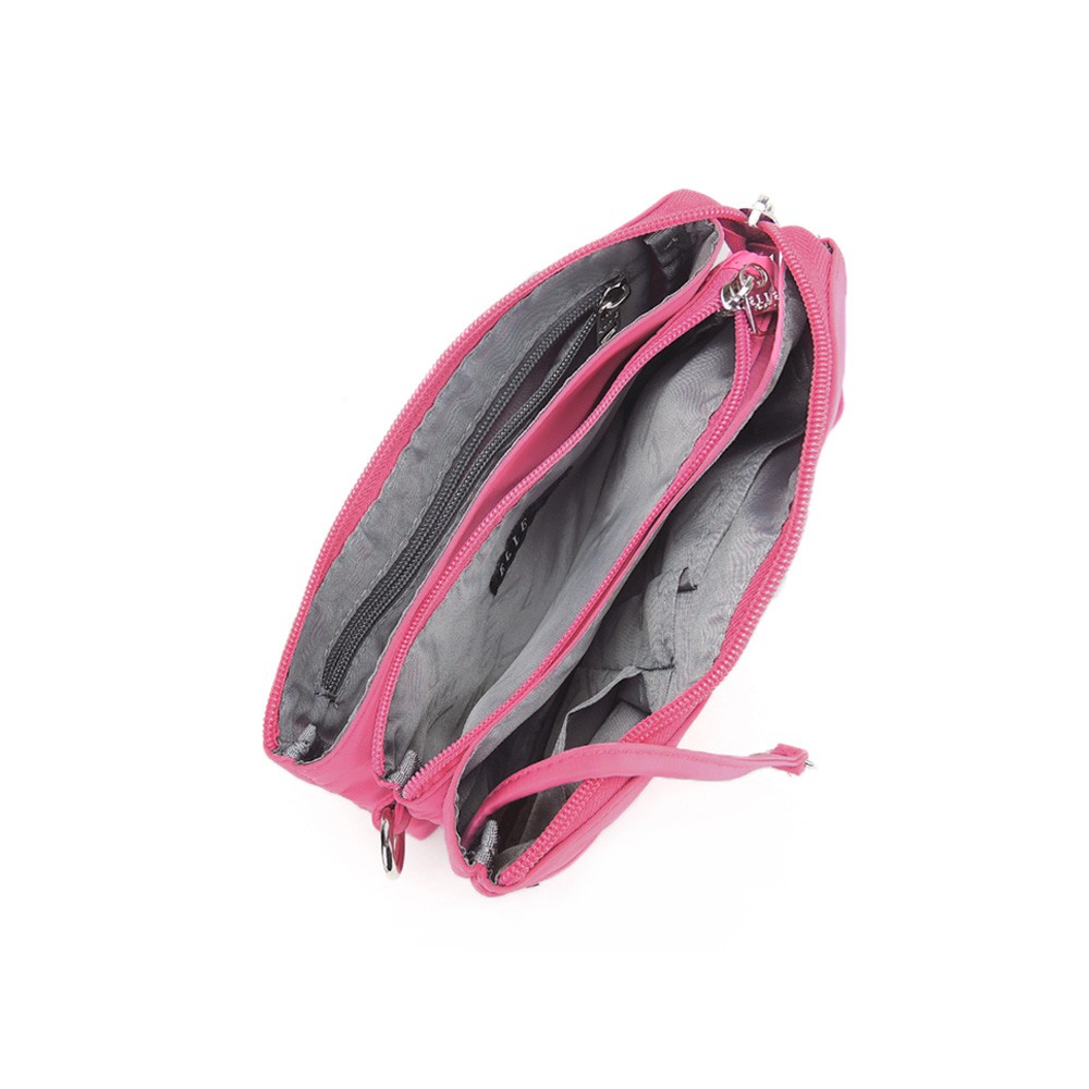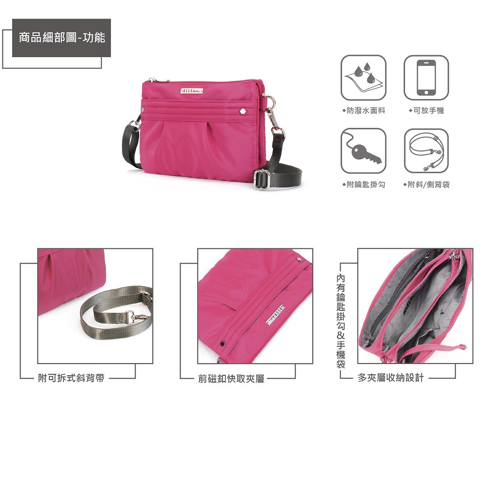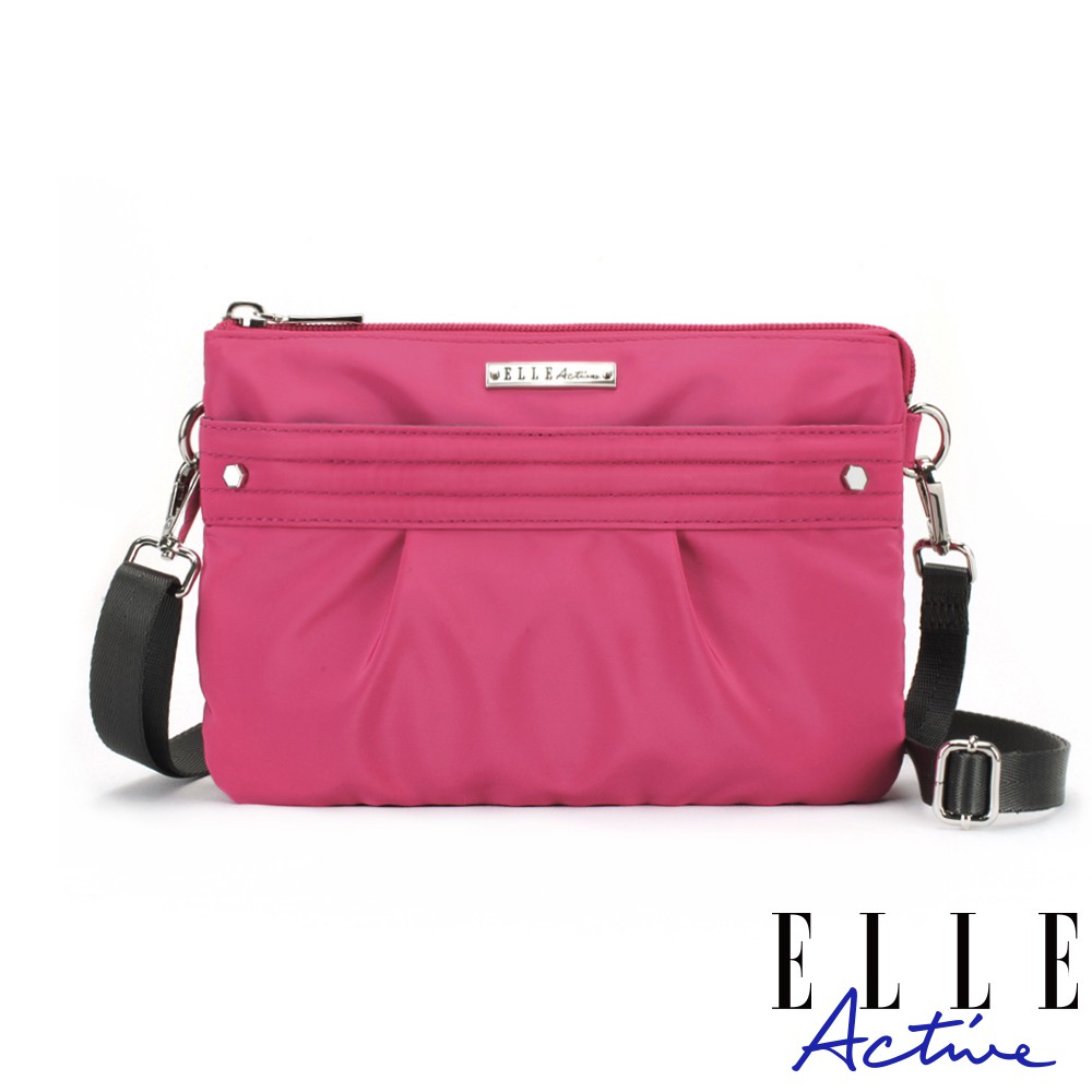 【ELLE Active】知性優雅系列-輕薄多夾層側背包-桃紅色