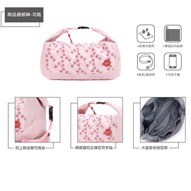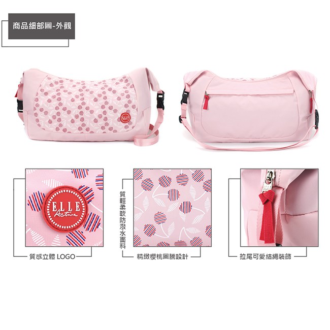 【ELLE Active】法式櫻桃系列-肩背側背兩用包-粉紅色